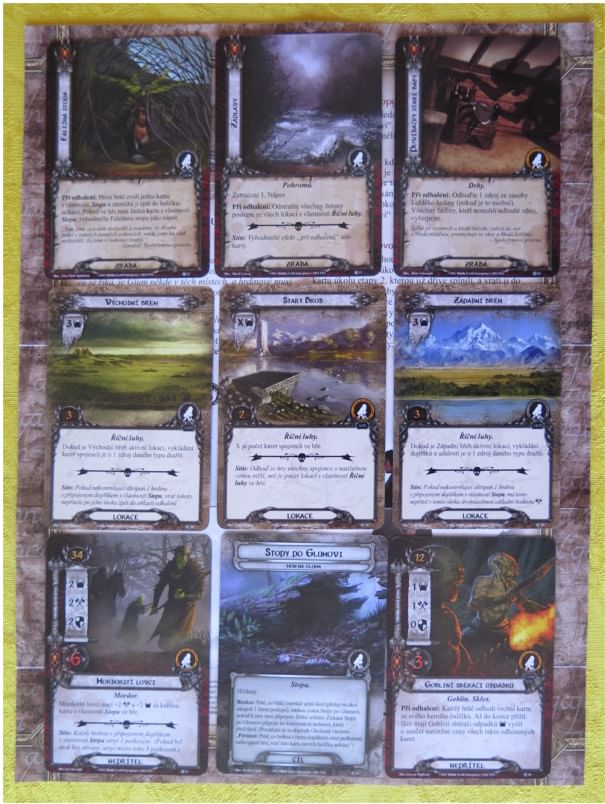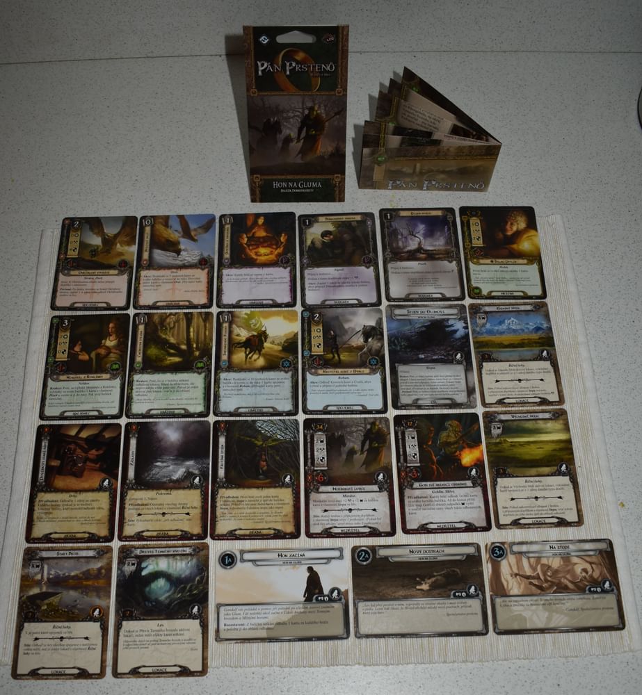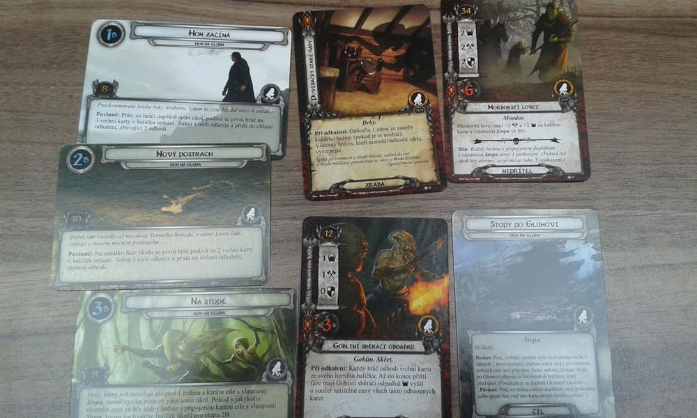 Je toto hodnotenie prínosné? ÁNO (2)Celkem lehké dobrodružství s hledáním stop po Glumovi. Rozšíření přináší pár zajímavějších karet - další píseň, karty pro orlí balíky. Nový hrdina Bilbo mě moc nezaujal, ale možná si v nějakém hobitím balíčku místo najde. Kdo má jen základní hru a baví ho, určitě by si měl alespoň dobrodružství prvního cyklu nakoupit a rozšířit tak variabilitu.