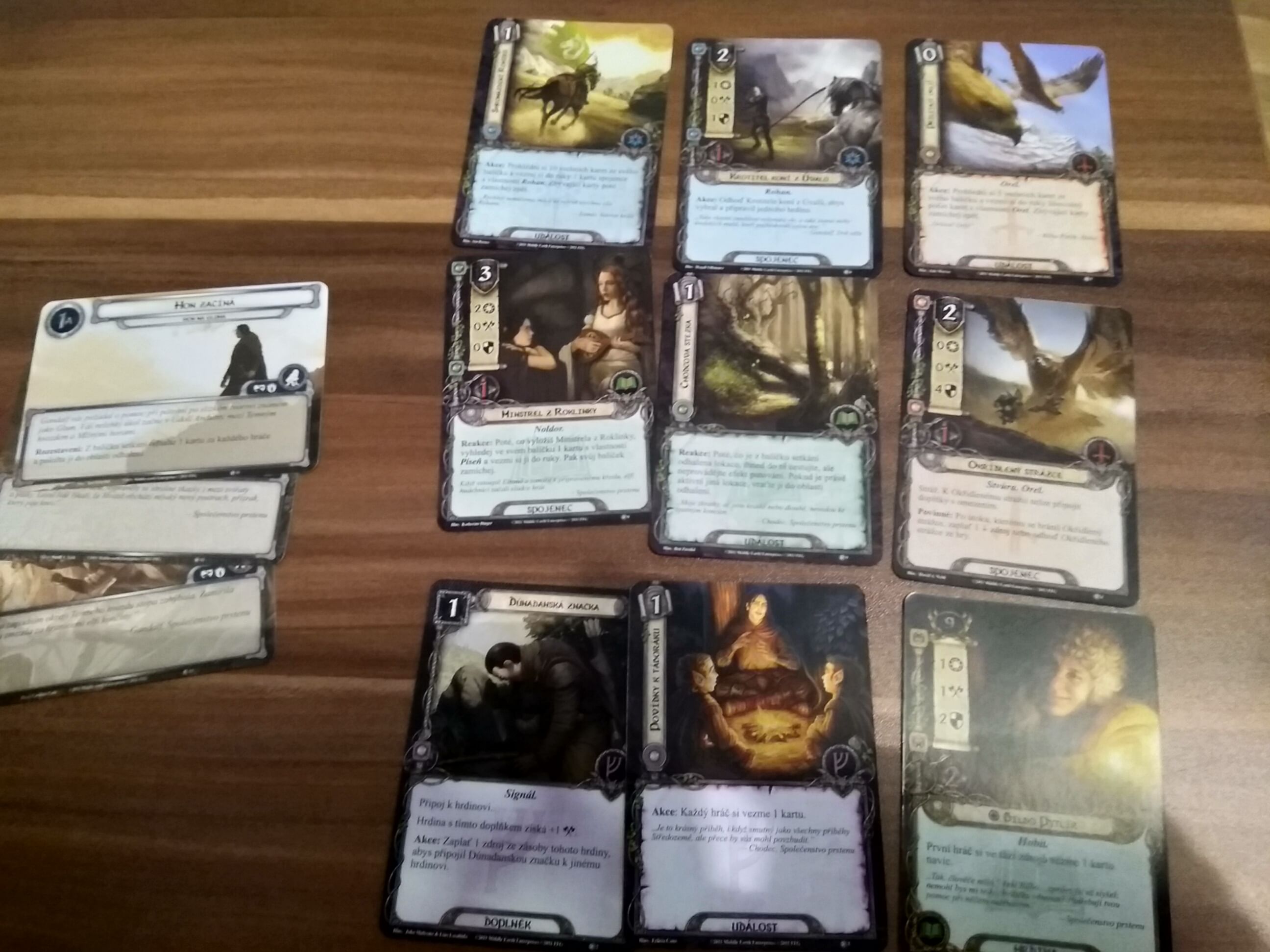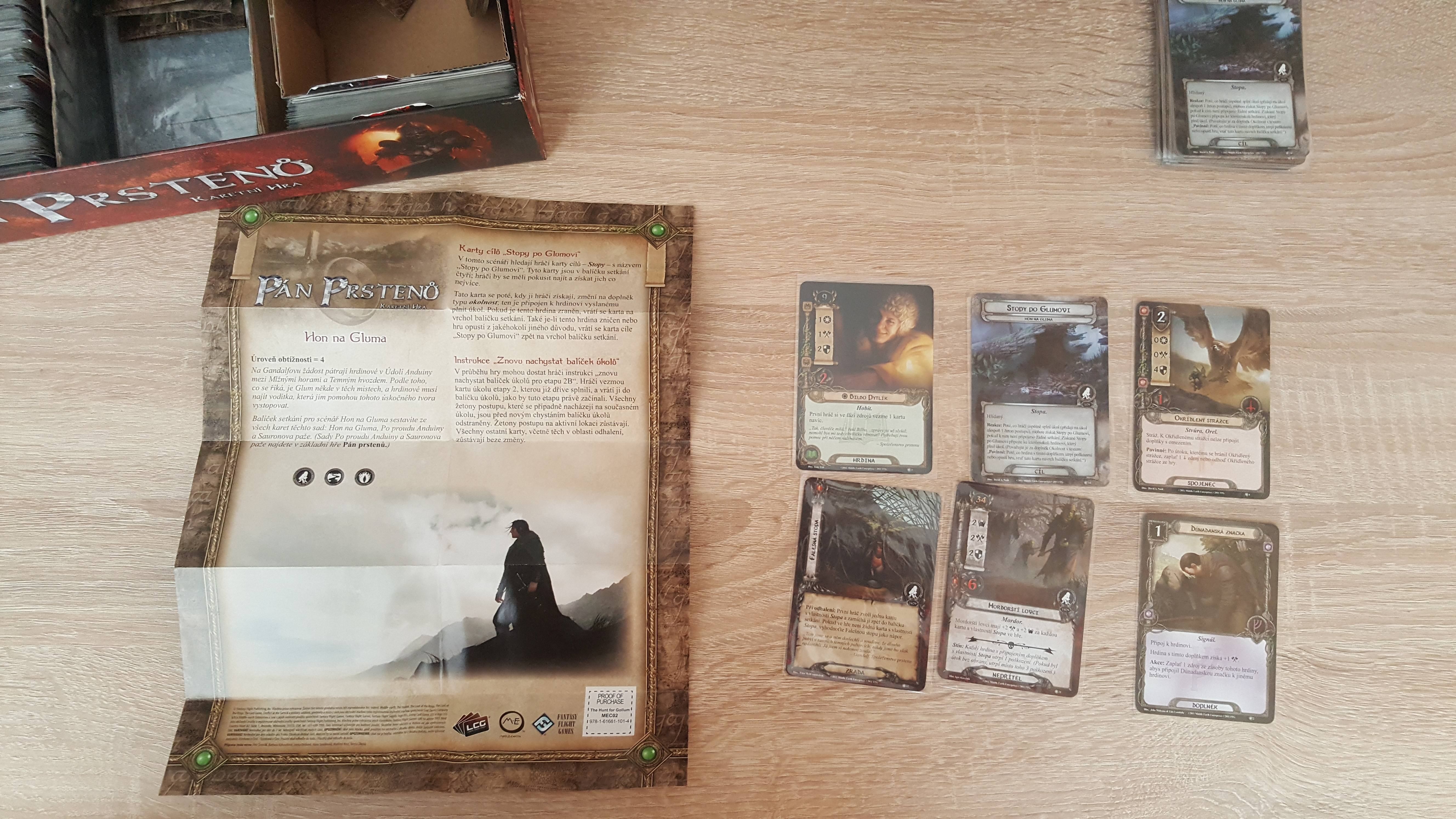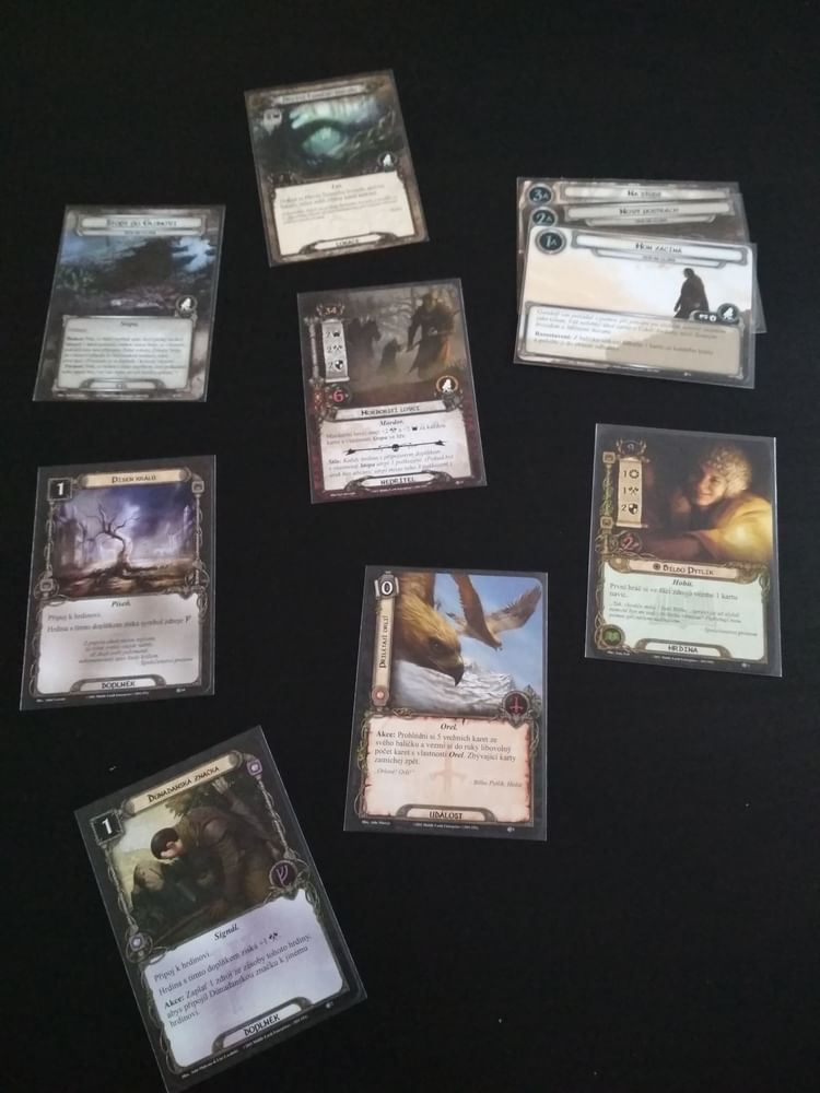 Ale celkově jsme neměli problém scénař úspěšně dokončit. Přibudou dvě nové karty z každého balíčku sféry (první orli, ze sféry duše dvě rohanské karty...) a také nový hrdina, Bilbo, jenž vám umožní brát více karet.