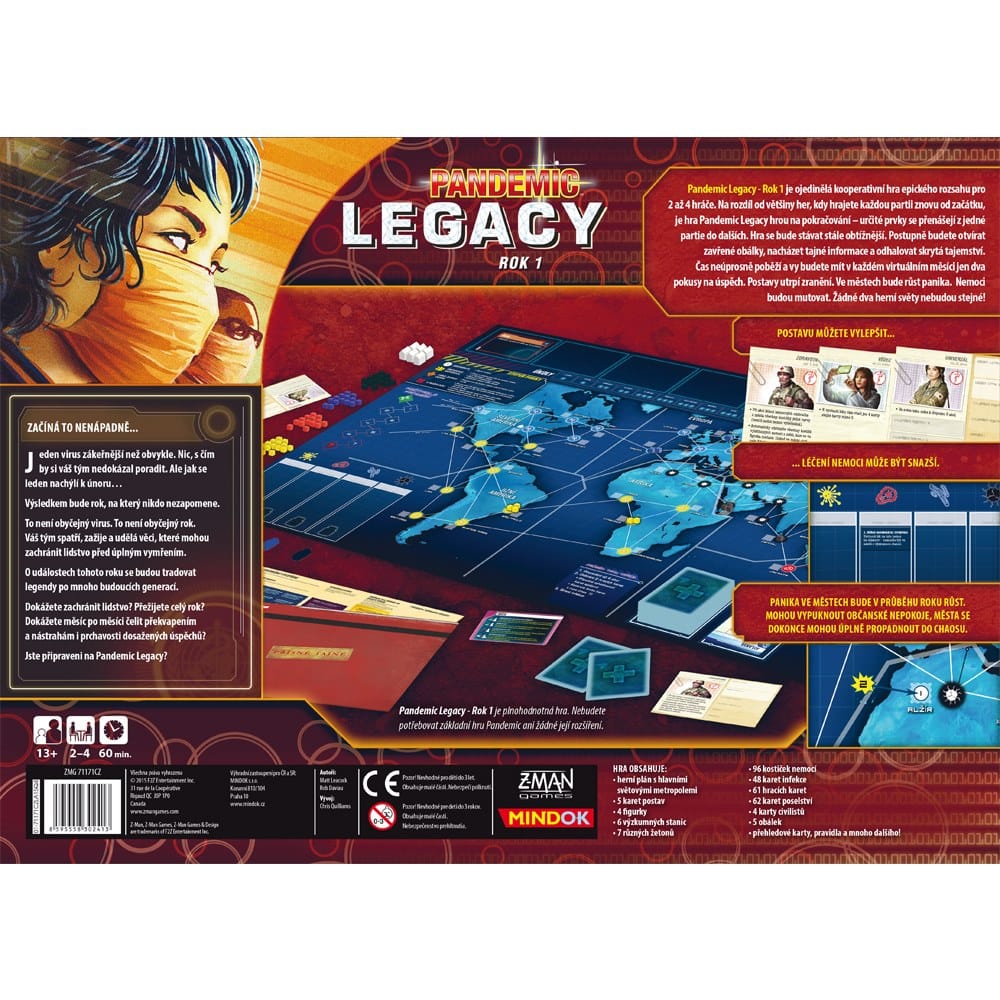 Pandemic Legacy prináša "kampaňový rozmer", ktorý vám umožní prežiť príbeh, ktorý sa nebude opakovať. Hru si zahráte v 2-4 hráčoch počas 12-24 sedení. Začínate obdobne ako v klasickom Pandemic, ako tím špecialistov bojujete so zákernými chorobami po celom svete, staviate výskumnej stanice, hľadáte liek. Každý hráč má svoju postavu s jedinečnou schopnosťou.