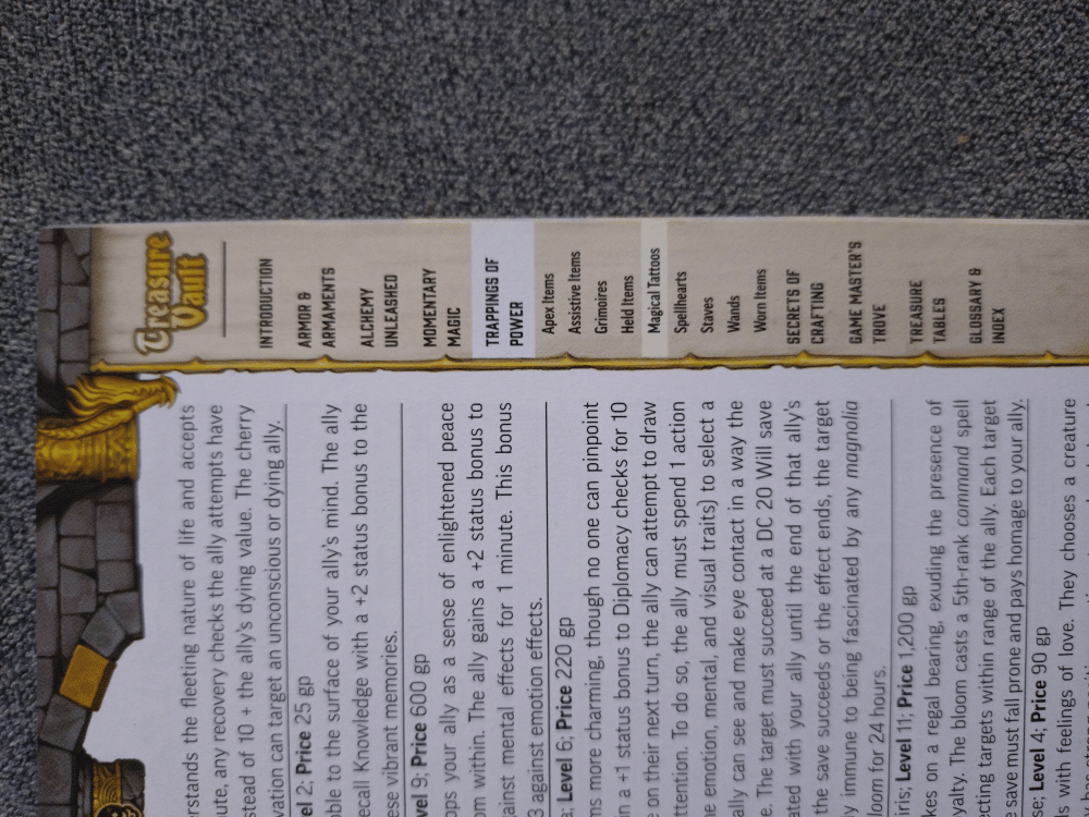 • New magic items of all shapes and sizes, from magical tattoos to artifacts like the goddess Shelyn's mighty glaive, the Whisperer of Souls.
