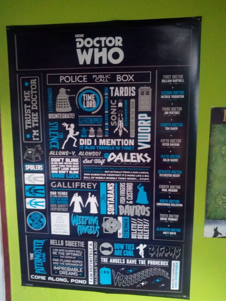 Infografika Doctora Who aj s jeho regeneráciami a všetkým známym z obľúbeného seriálu BBC ako plagát z populárnej série Doctor Who o veľkosti 61x91cm.