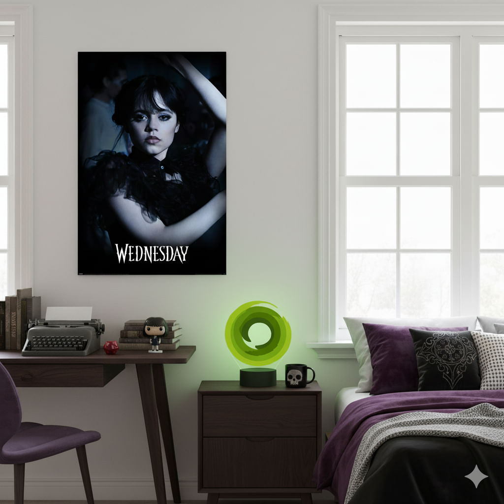 Plagát s hlavnou hrdinkou populárneho seriálu Wednesday od spoločnosti Netflix bude ozdobou vášho domova a kancelárie.