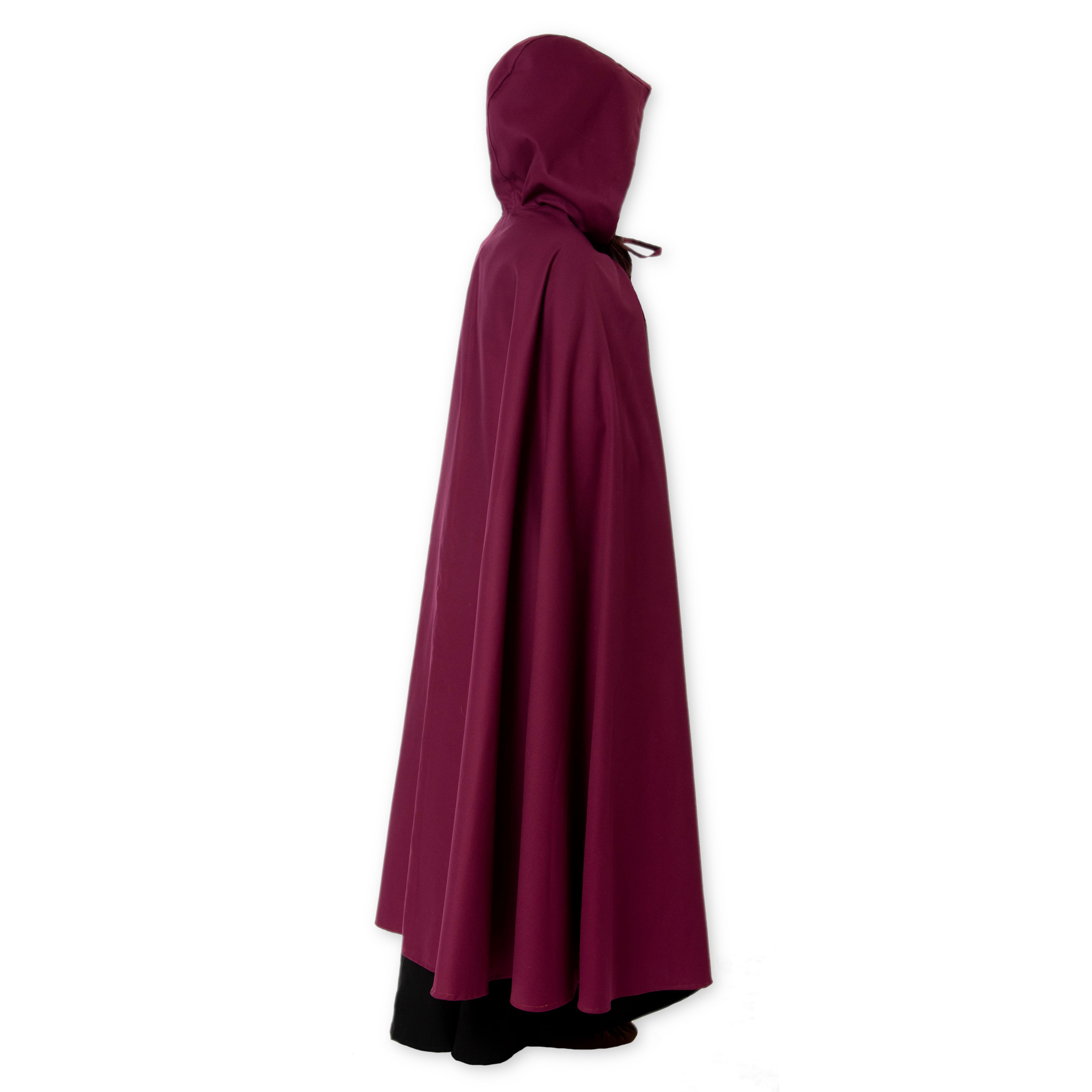 Vínová verzia jednoduchého plášťa, vyrobená zo silnej bavlnenej tkaniny, má polopriliehavý strih, zaväzuje sa šnúrkou pod krkom. Výborný doplnok k takmer každému drevorubačskému alebo larpovému kostýmu. K dispozícii v štyroch veľkostiach (S - dĺžka 100 cm, M - dĺžka 110 cm, L - dĺžka 120 cm, XL - dĺžka 130 cm - dĺžka sa meria od krku po chrbát, bez kapucne).
