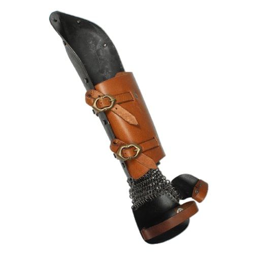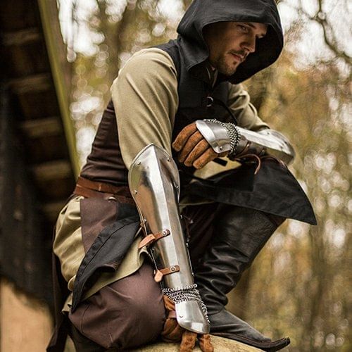 Tieto oceľové rukavice predstavujú skvelý kompromis medzi ochranou ruky a voľnosťou pohybu. Platová časť je pripevnená ku kožené rukavicu, takže skvele ochráni palec, kĺby, zápästia i predlaktia. Spojenie plátov oceľovými krúžkami potom zaisťuje skvelú pohyblivosť. Skvelá ochrana rúk pre drevený šerm - dřevárny či larp.