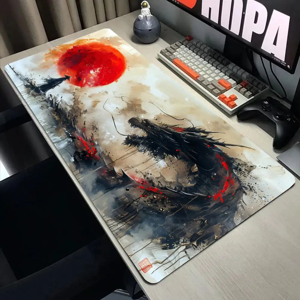 Vylepši svoj herný alebo pracovný setup štýlovou podložkou s grafikou Draka a Samuraja. Táto XXL podložka o rozmeroch 90 x 40 cm pokryje tvoj stôl dostatočným priestorom pre klávesnicu aj myš. Ideálne pre intenzívne hranie, prácu aj štúdium. Spodná časť podložky je vybavená povrchom proti sklzu.