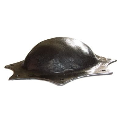 Kovaná pokrievka na štít s ozdobnými okrajmi, vyrobená z 2 mm hrubého plechu. Je opatrená dierkami na prinitovanie, priemer je cca 19 cm, výška cca 4,5 cm.