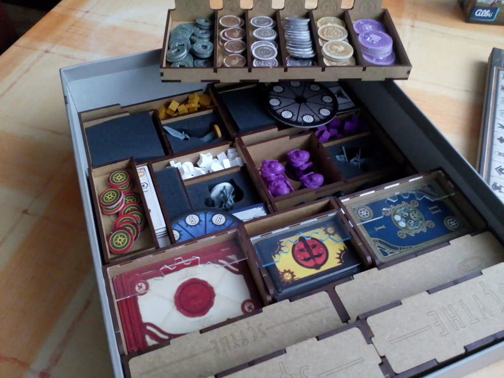 "Ready-To-Play" zakladač pre hru Scythe , ktorý pojme všetky komponenty pôvodnej hry vrátane rozšírenia pre 6 až 7 hráčov.