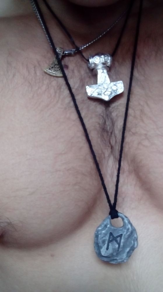 Thórovho kladivo - vyvolať elementárne búrky, kladivo hromovládcovi, boha Thora. Prívesok je zhotovený z postriebreného cínu, výška cca 4 cm. K prívesku si môžete zaobstarať tiež koženú šnúrku .