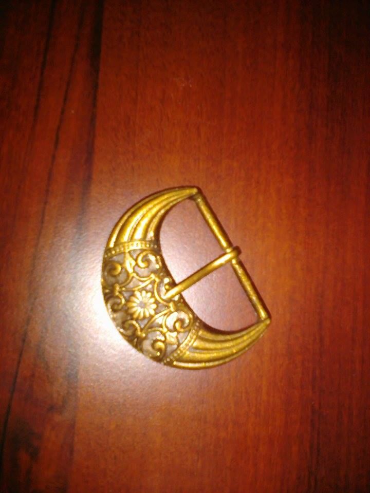 Masívne zdobená pewterová liata spona na opasok šírky 4,5 cm.