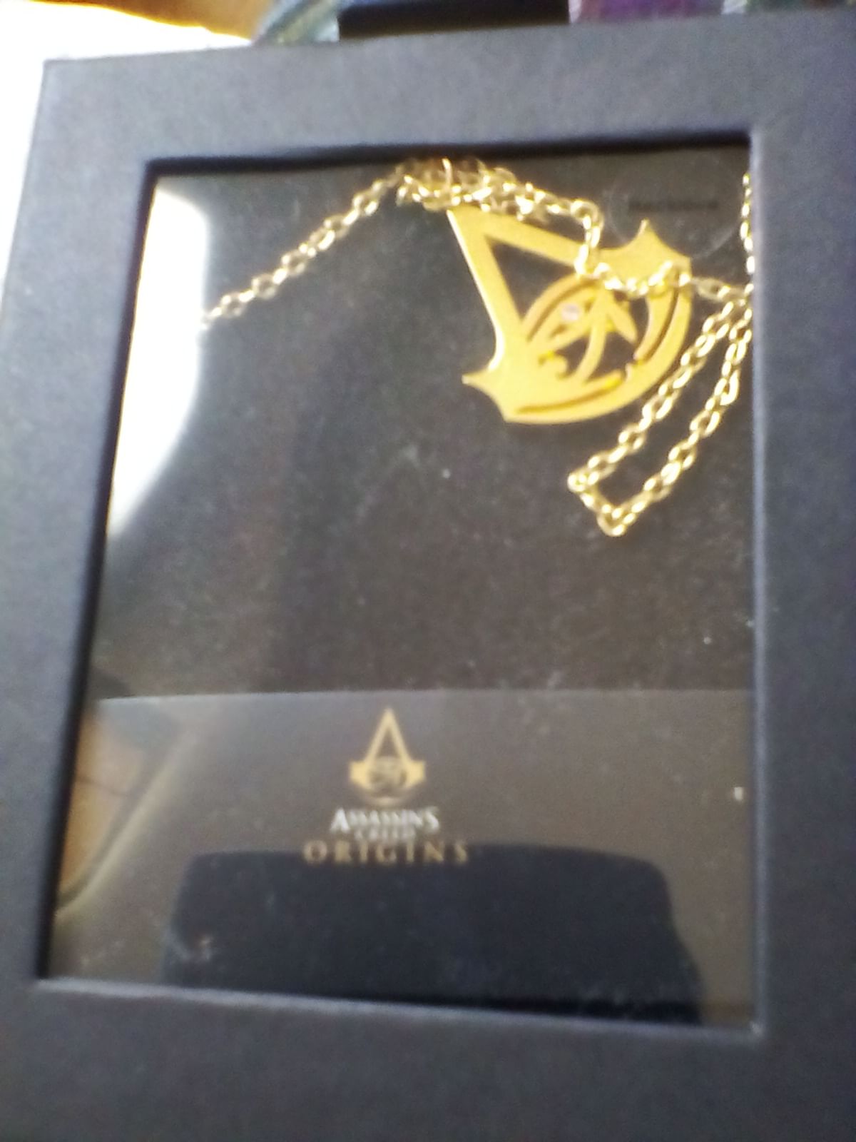 Pozlátený prívesok v podobe loga populárnej hry Assassins Creed Origins. Oficiálne licencovaný produkt.