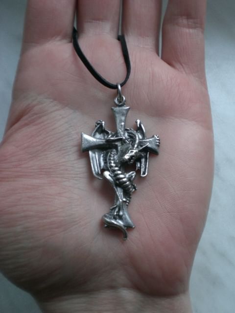 Lehký přívěšek s krásným motivem. =) Jediné co bych vytkla je zpracování cínu za dračí hlavou, z boku to nevypadá moc pěkně a myslím, že není vhodný pro stálé nošení. Ale za tu cenu paráda!