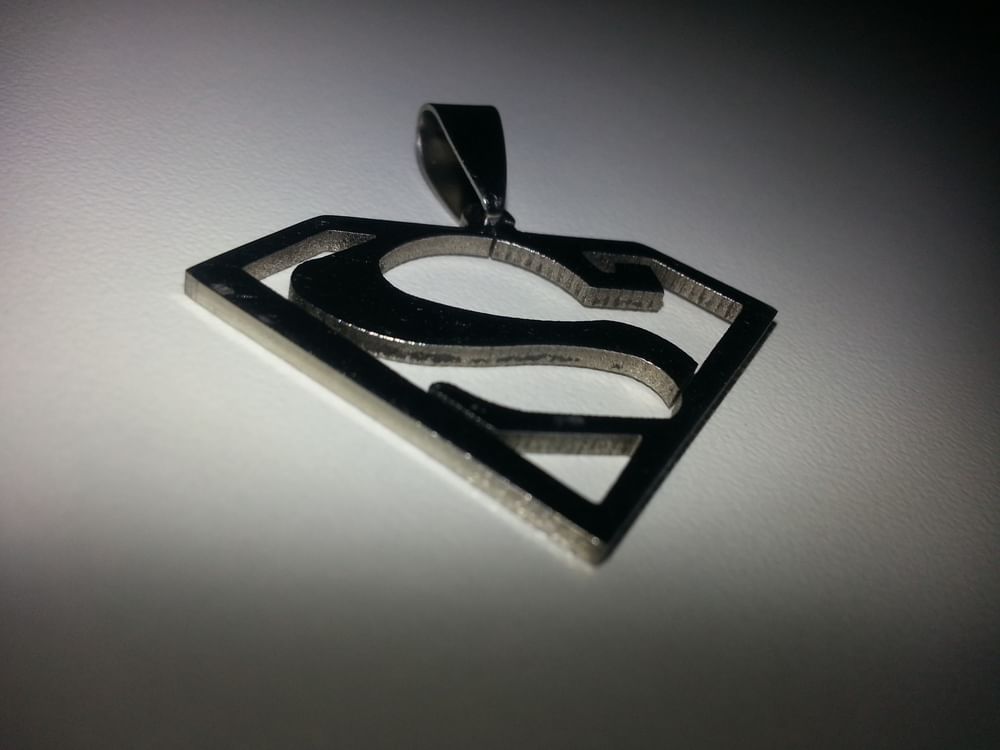 Amulet z nerezovej ocele spodobňuje supermanov znak. Výška šperku je cca 3,5 cm.