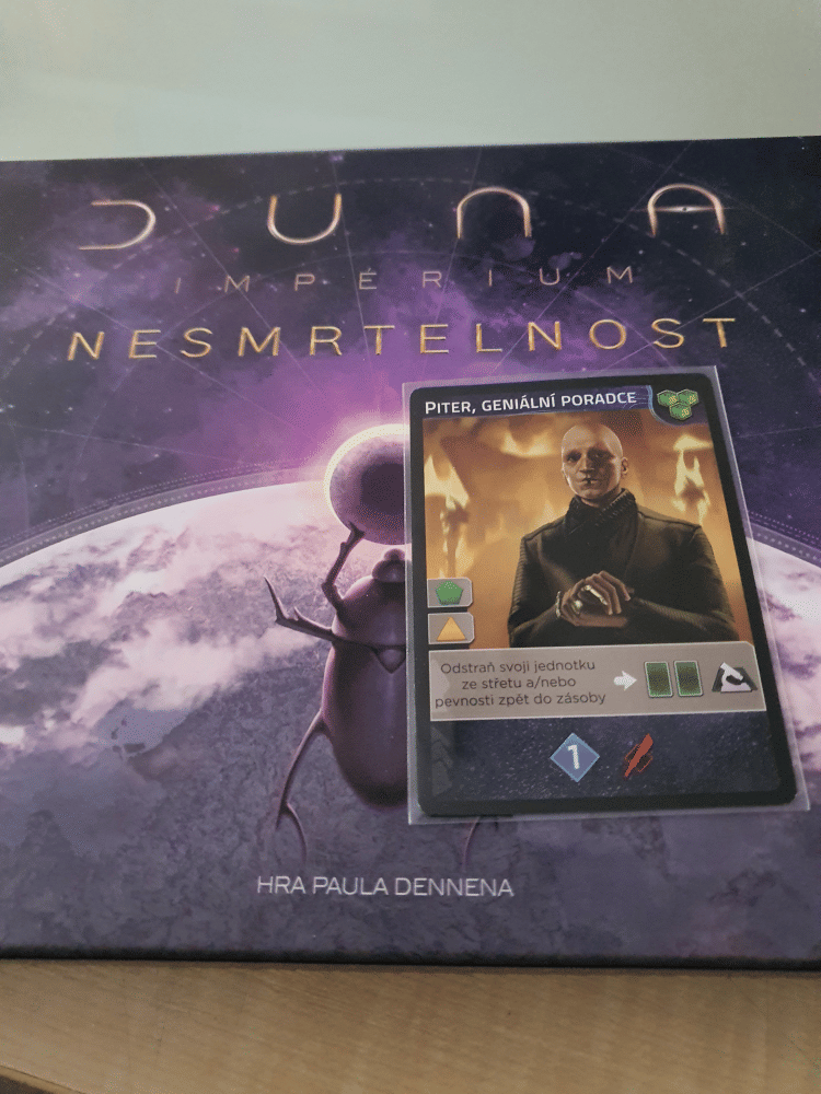 Karta Piter, geniálny poradca je promo k druhému rozšíreniu hry Duna: Impérium - Nesmrteľnosť.