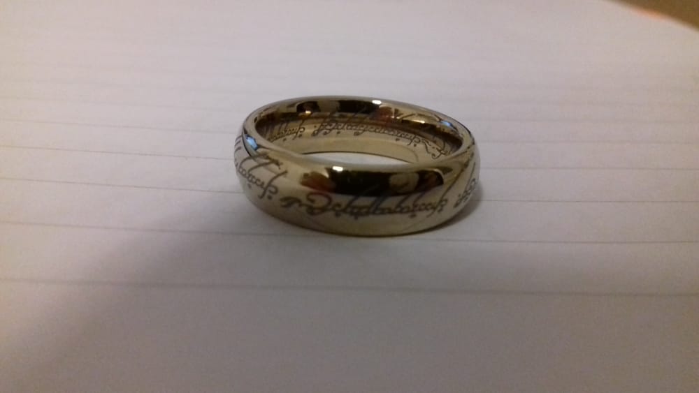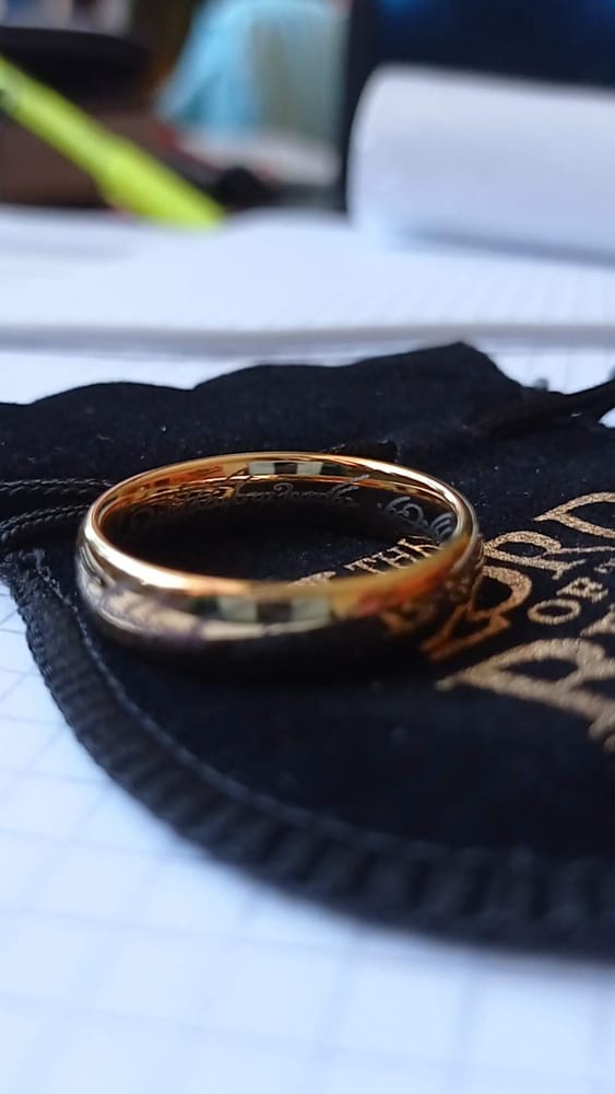 Malý vak ve kterém prsten přišel je menší než sem si myslel ale co čekat když je v něm jen prsten. Písmo na prstenu je hodně světlé ale i tak de dobře vidět.