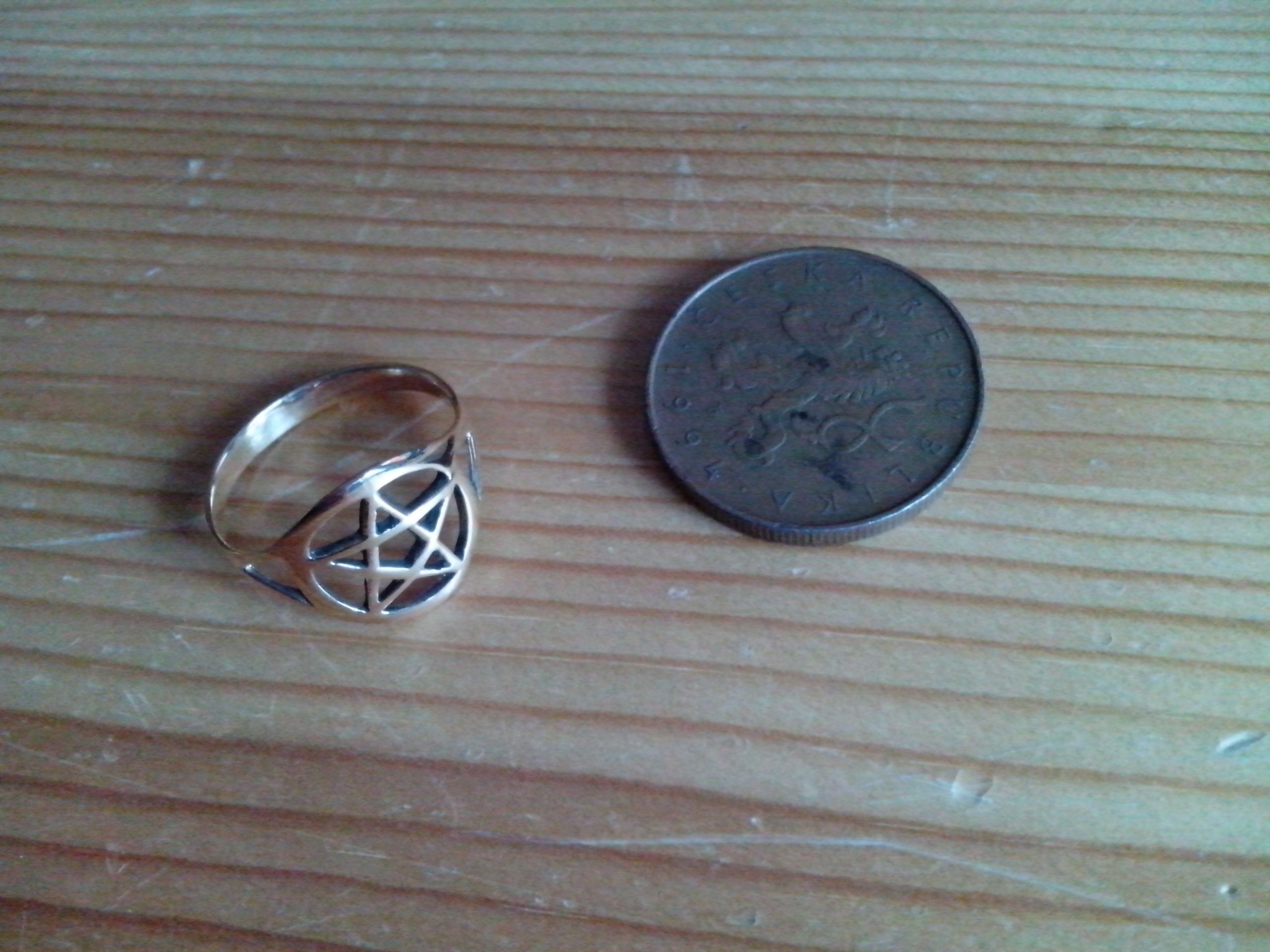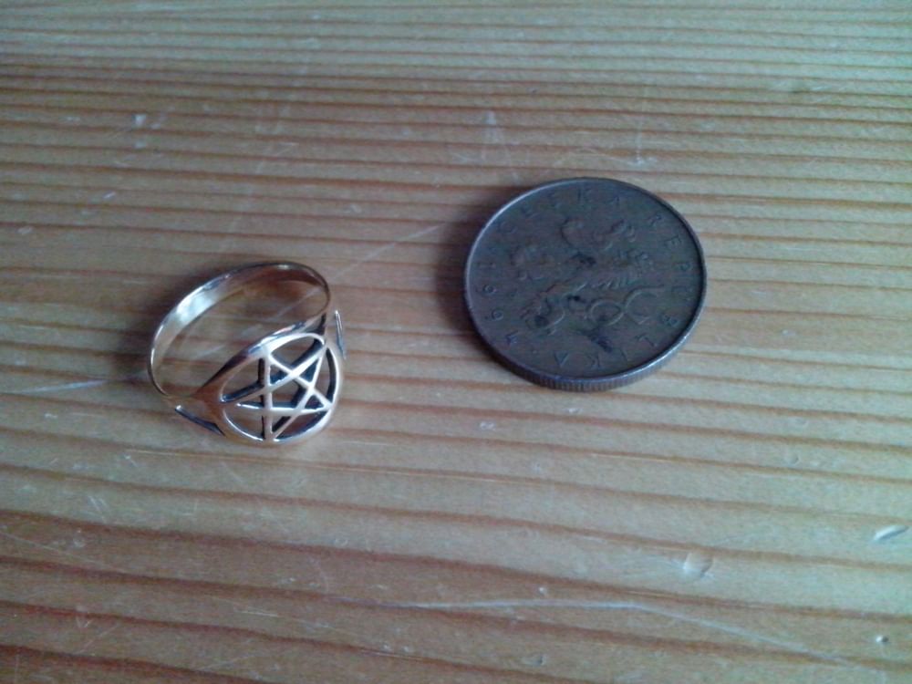 Prsteň vyrobený z bronzu, zdobený pentagramom. Vnútorný priemer prsteňa je 1,9 cm.