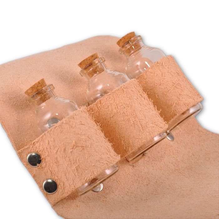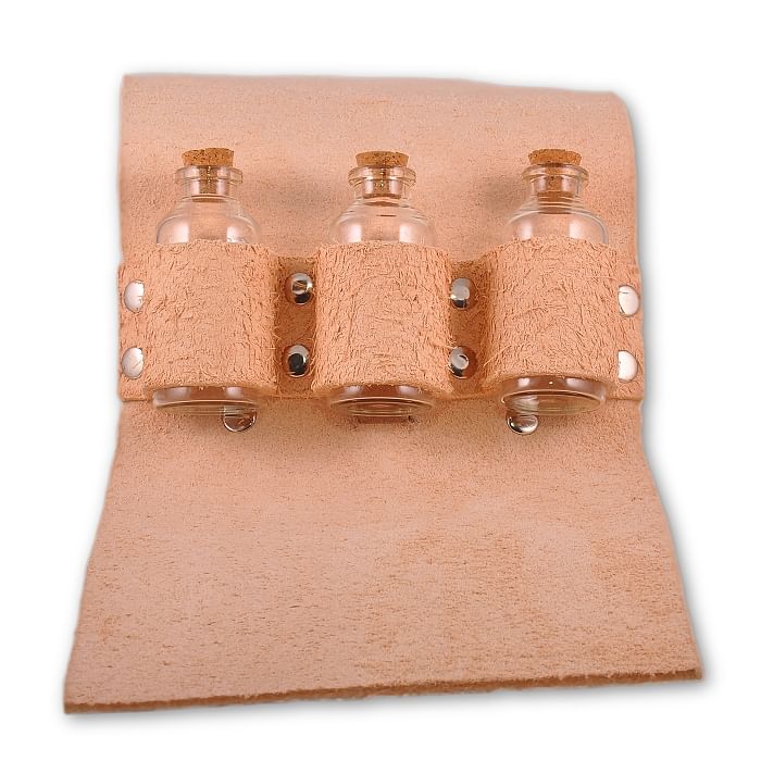 Toto pouzdro je opravdu stylové a kvalitní, lahvičky uvnitř jsou také kvalitní a mile mě tento výrobek překvapil. Vypadá krásně na pásku ke středověkým šatům.