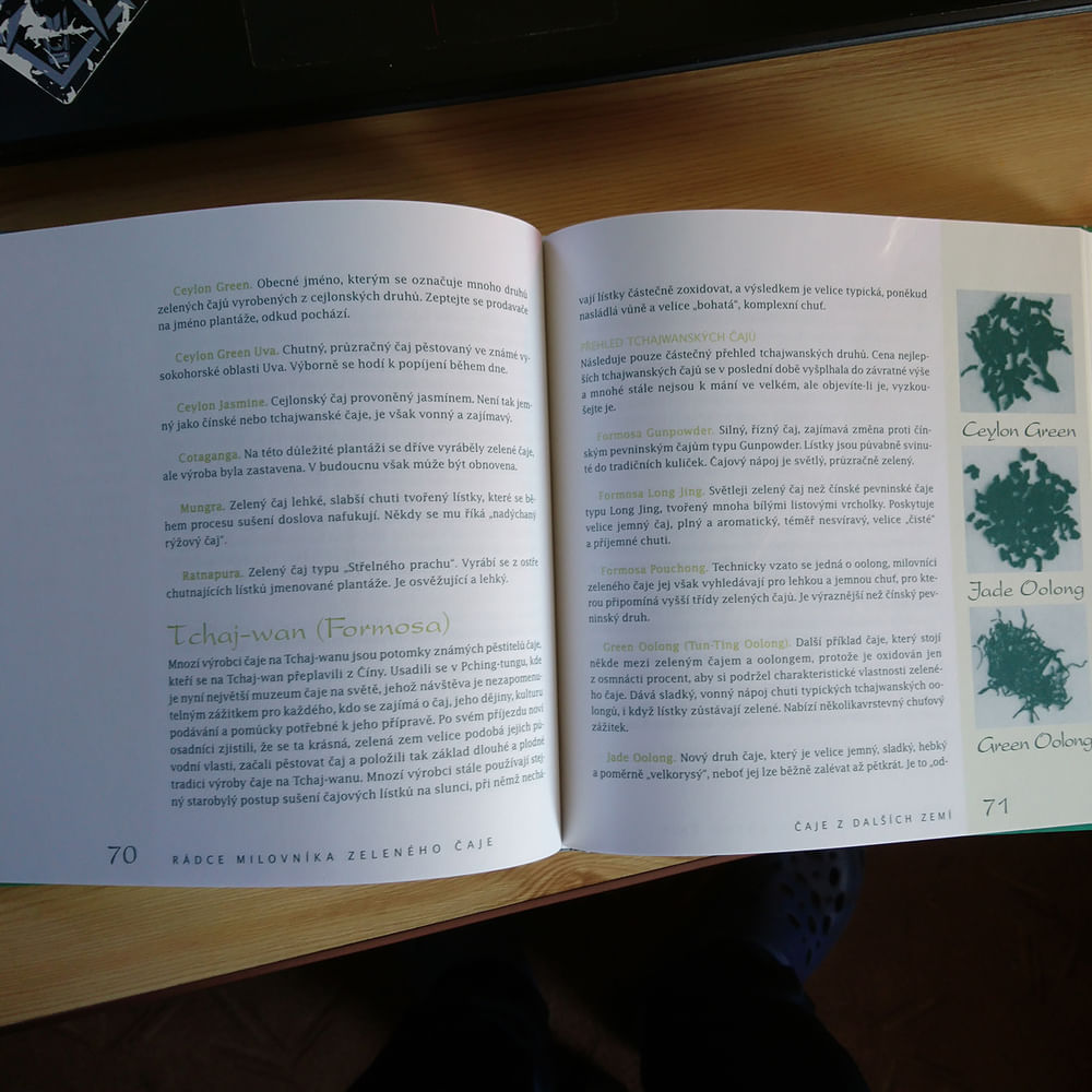 Pokud se chcete zorientovat v druzích zeleného čaje, jeho původu a historii, určitě můžete po knížce sáhnout. Dočkáte se i doplňkových citací, receptů z čaje a slovníčku pojmů. Doteď jsem sám netušil, kde všude se dá čaj prakticky využít.