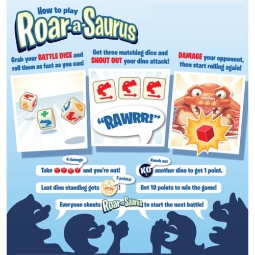 Kostková hra Roar-a-Saurus vám umožní zviesť dinosaurie bitku v dvoch rôznych herných variantoch: v jednoduchom alebo turnajovom módu.