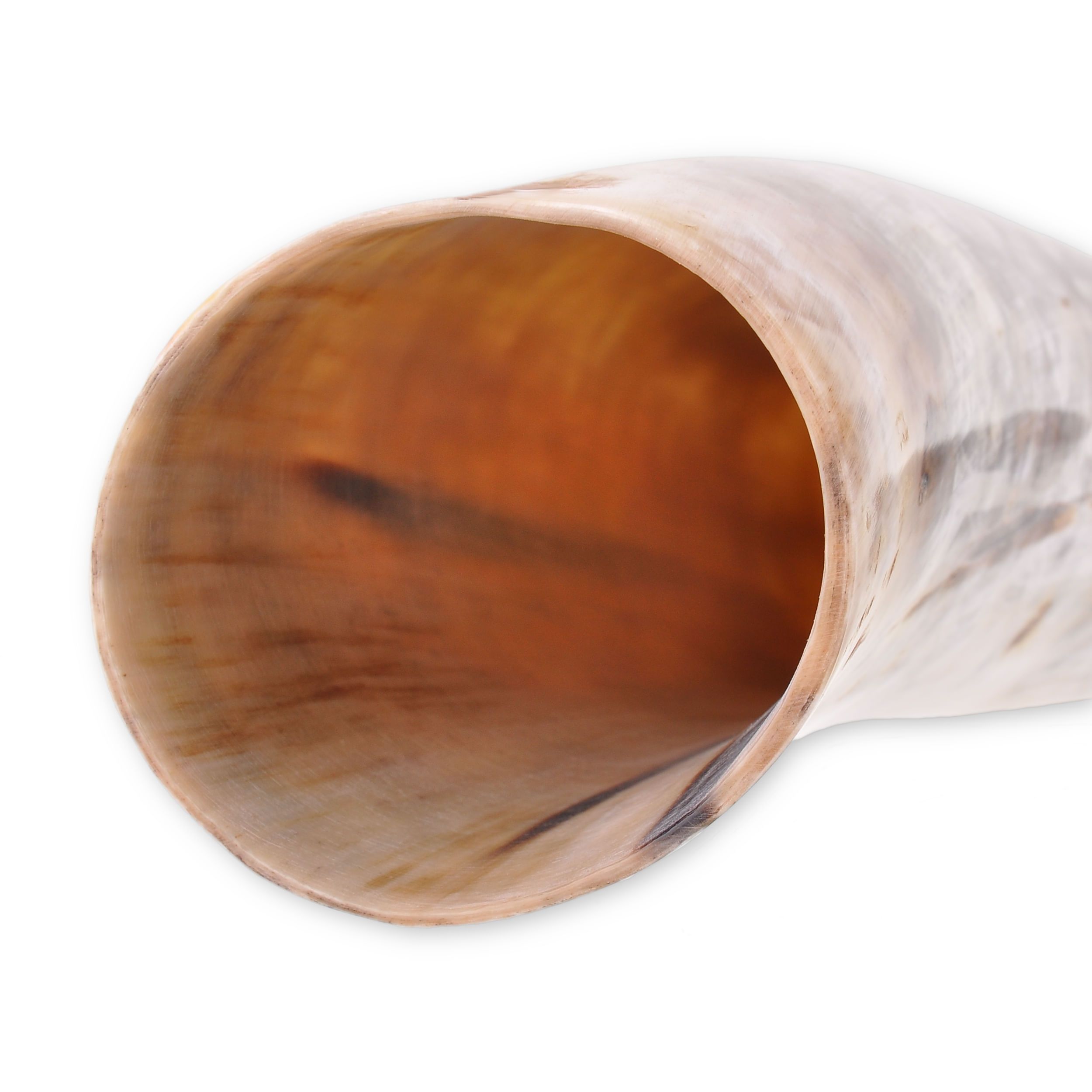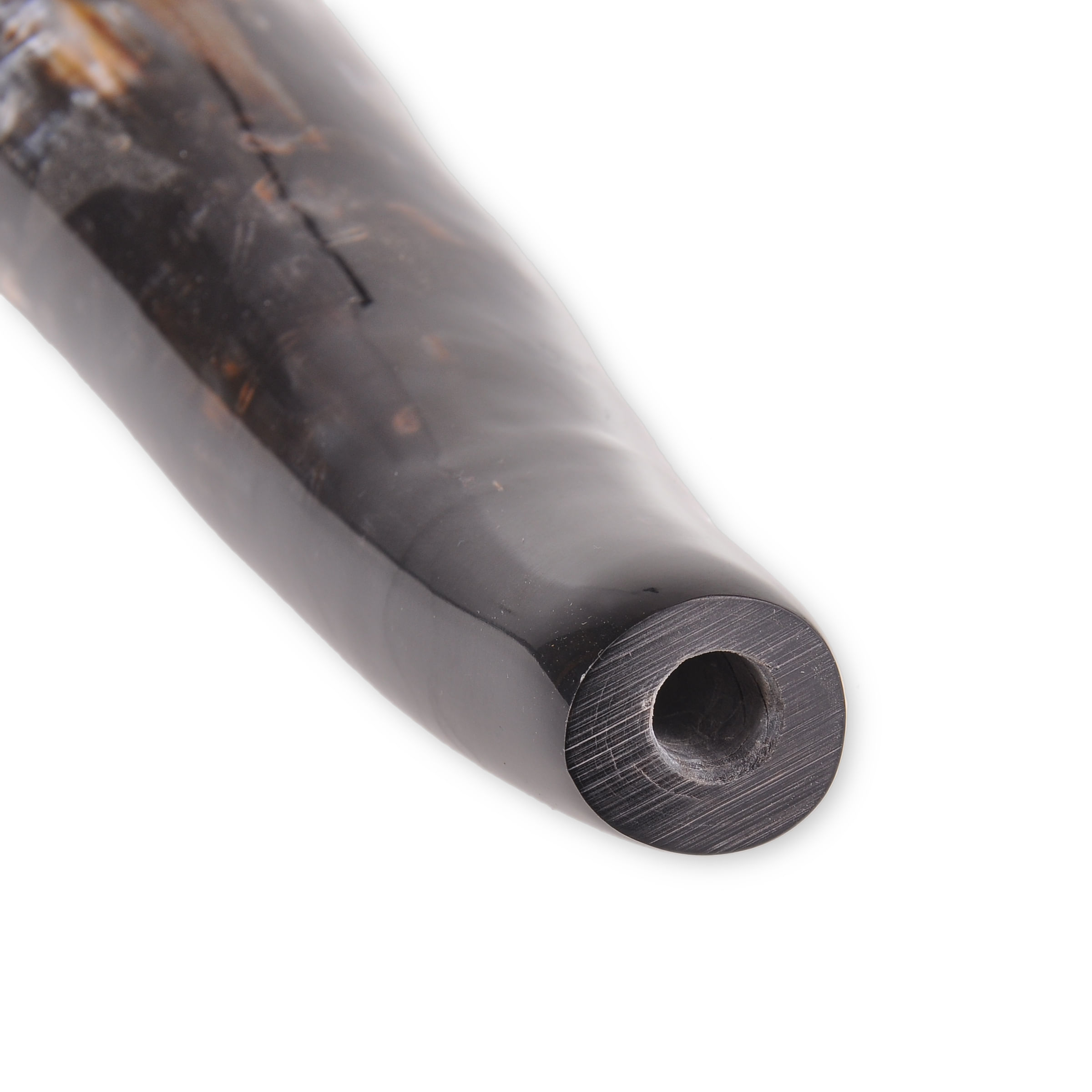 Vyleštený dlhý roh, technika fúkania je podobná ako pri trúbke - dôležitý je správny tlak (vzduch sa fúka cez zatvorené pery, ktoré vibrujú), tóny sa dajú meniť zmenou napätia pier a sily výdychu. Roh je dlhý asi 50 cm.