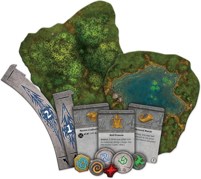 Balenie RuneWars: The Miniatures Game - Runewars Essentials Pack ponúka všetko príslušenstvo k základnej hre - tokeny, terény, šablóny, karty a kocky.