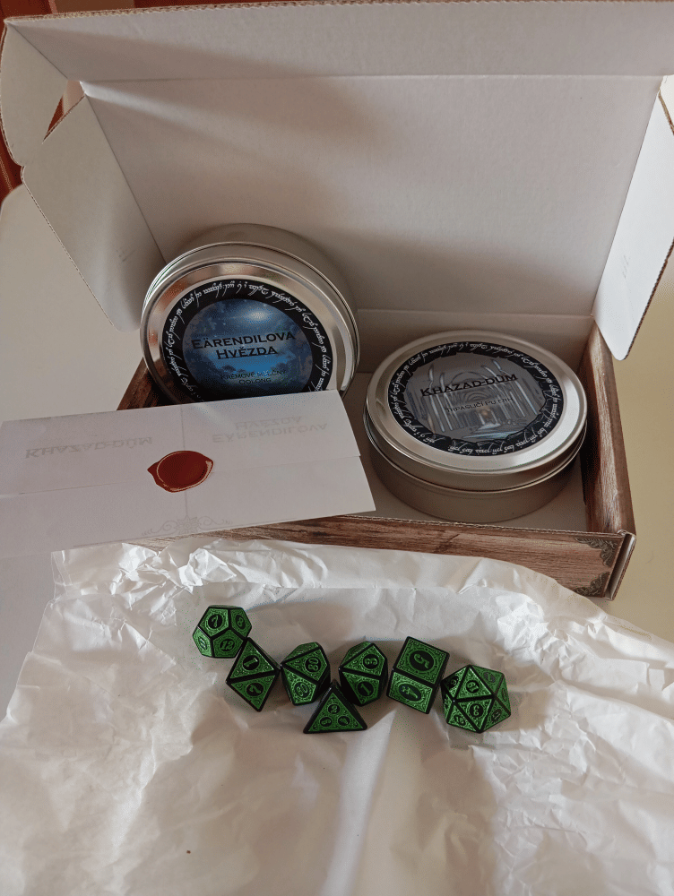 Je toto hodnotenie prínosné? ÁNO (1)Pěkně provedená dárková kazeta, originálně balené kostky. Zakoupeno jako dárek, pro milovníka pána prstenů, dračího doupěte a dokonce i čaje. Věřím, že bude spokojenost ☺️