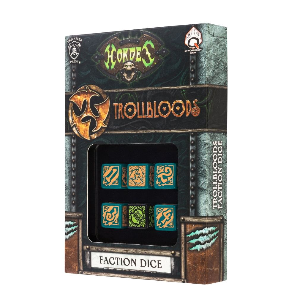 Sada šestistěnných kociek s motívom frakcie Trollbloods z hry Hordes. Veľmi kvalitné prevedenie.