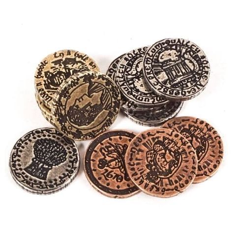 V balení nájdeš 20 kovových mincí, každú s drobnými detailmi, ktoré pripomínajú tradičné vidiecke motívy, ale aj štipku tajomstva dávnych pokladov. Sú ideálne pre RPG kampane, LARP hry, alebo ako štýlová herná mena v akomkoľvek fantasy svete.