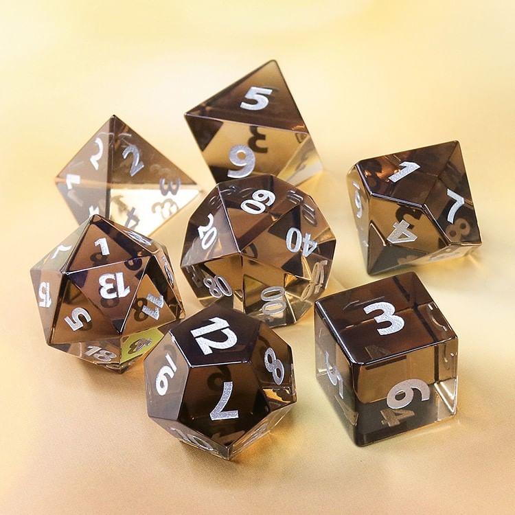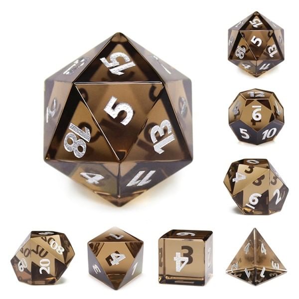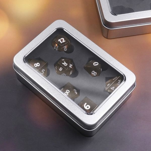 Kocky majú elegantný dizajn s ostrými hranami a v balení je sedem kociek (k4, k6, k8, k10, k12, k20 a k%).