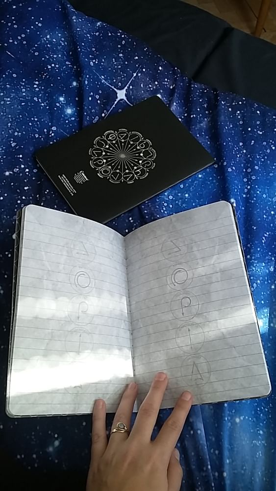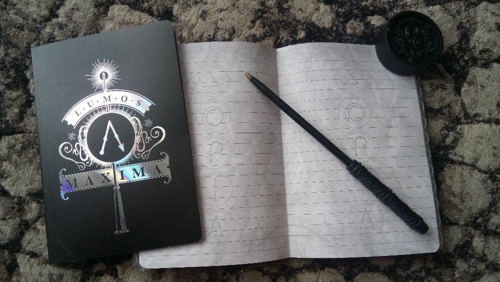 Každý zo zápisníkov obsahuje 40 linkovaných strán mramorovaného papiera, z druhej strany dosiek sú namaľované symboly kúziel.