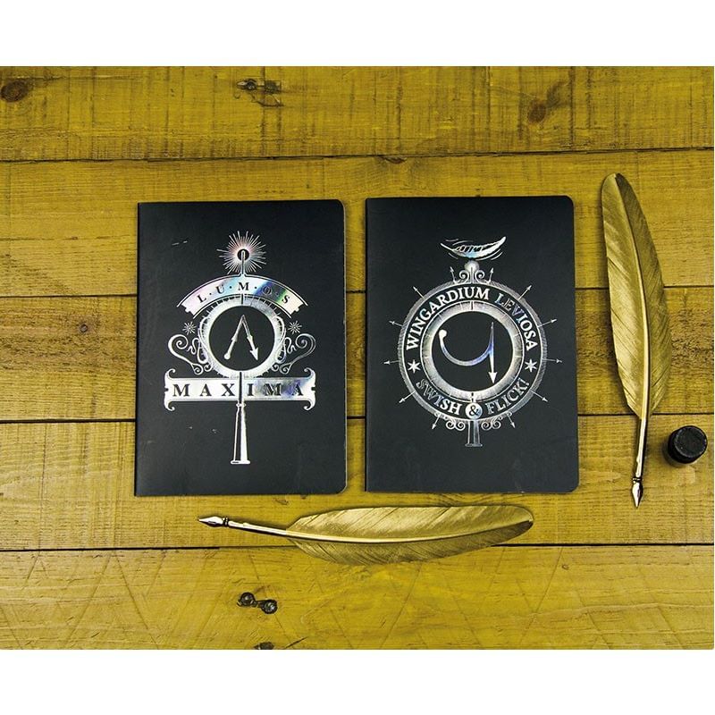 Je toto hodnotenie prínosné? ÁNOZápisníky jsou krásné. Desky jsou velmi tvrdé, zvenku vypadají přesně jako na fotografii produktu a z vnitřní strany mají náčrtky pohybů ruky pro všechna možná zaklínadla. :) Stránky jsou šedě mramorově podbarvené a opakují se na nich symboly zaklínadel. Velikost sešitů je A5.