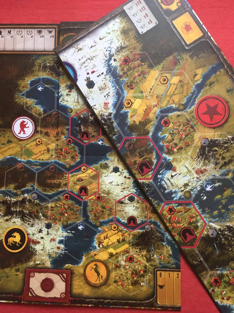 Rozšírenie hracej dosky hry Scythe pomáha najmä pri hre viacerých hráčov s rozšírením Titáni nebes - na normálnej doske už bolo pri tomto rozšírení málo miesta na jednotlivých hexoch. Finálna veľkosť hracej dosky je naozaj impozantná - na veľkú dosku je treba aj veľký stôl. :)