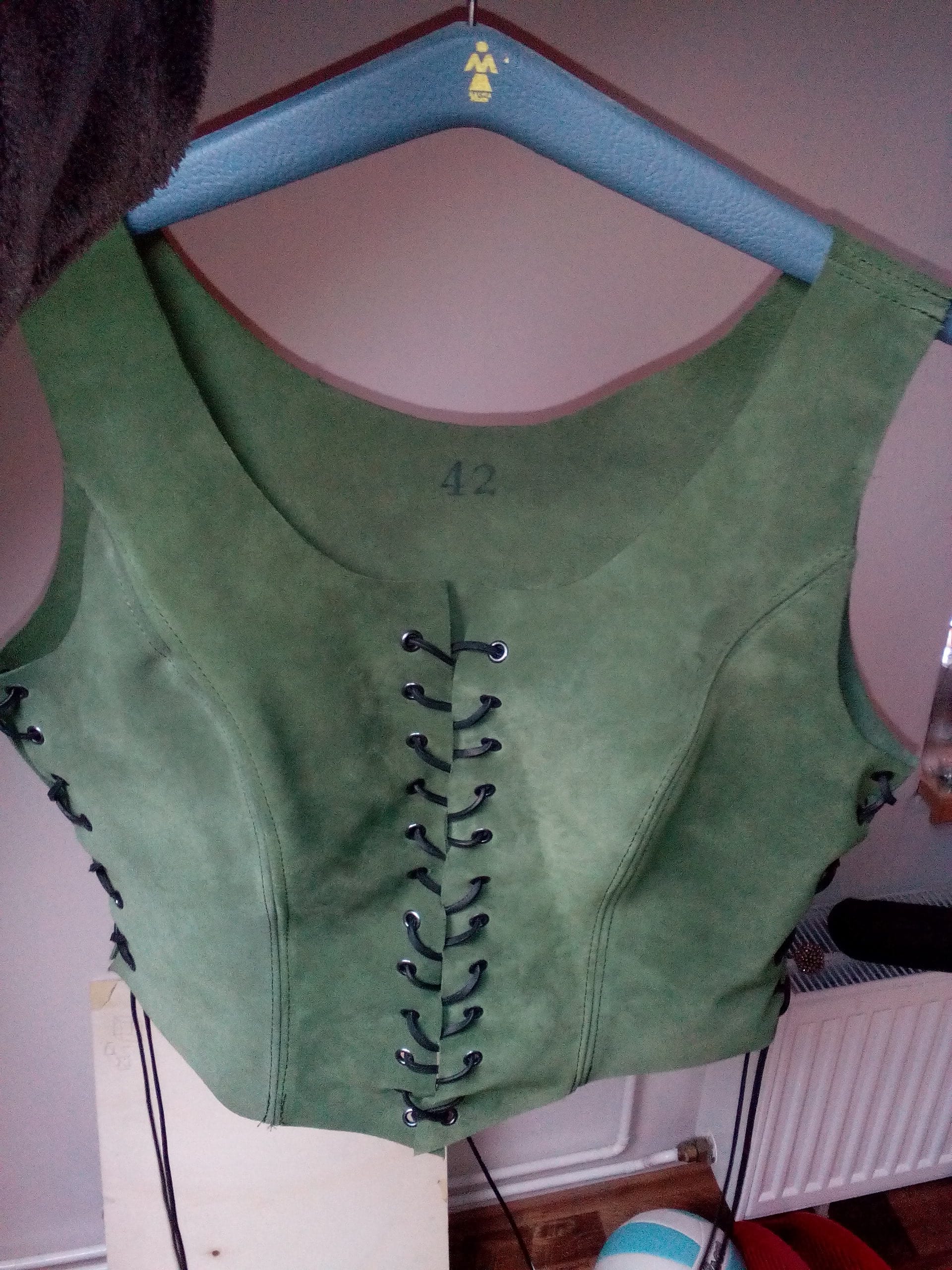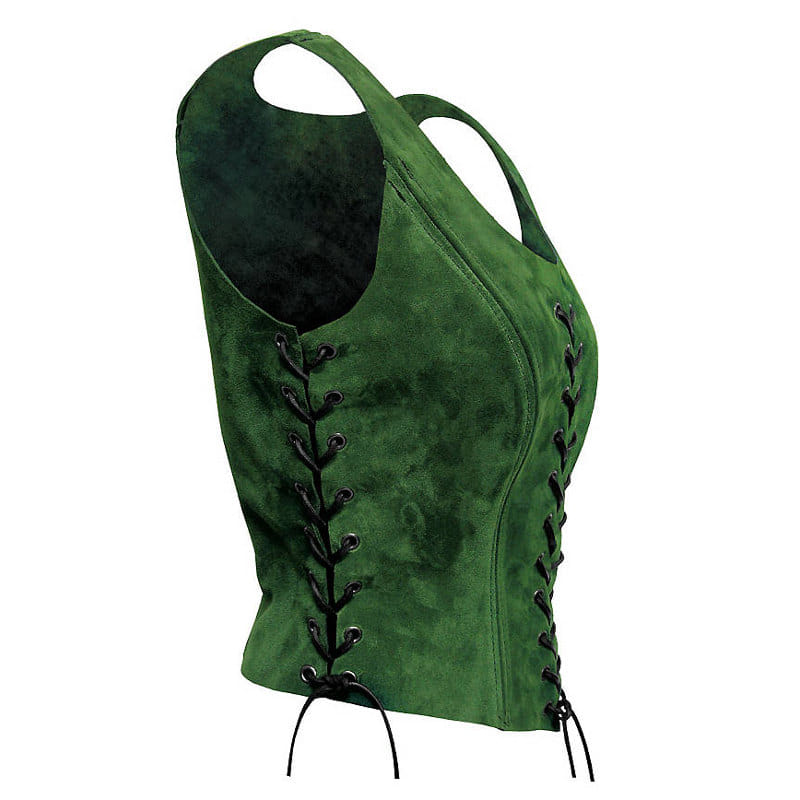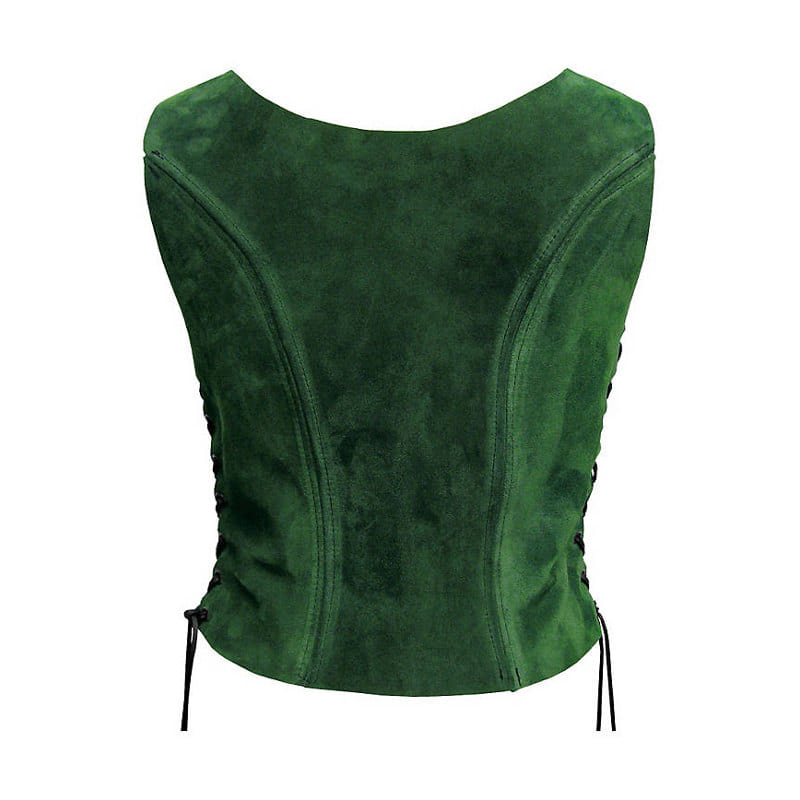 Dámsky živôtik v zelenej farbe, vhodný ako doplnok dobového kostýmu. Je vyrobený z kvalitnej kože a je opatrený šnurovaním na bokoch a spredu, prispôsobí sa tak takmer ľubovoľnej postave.