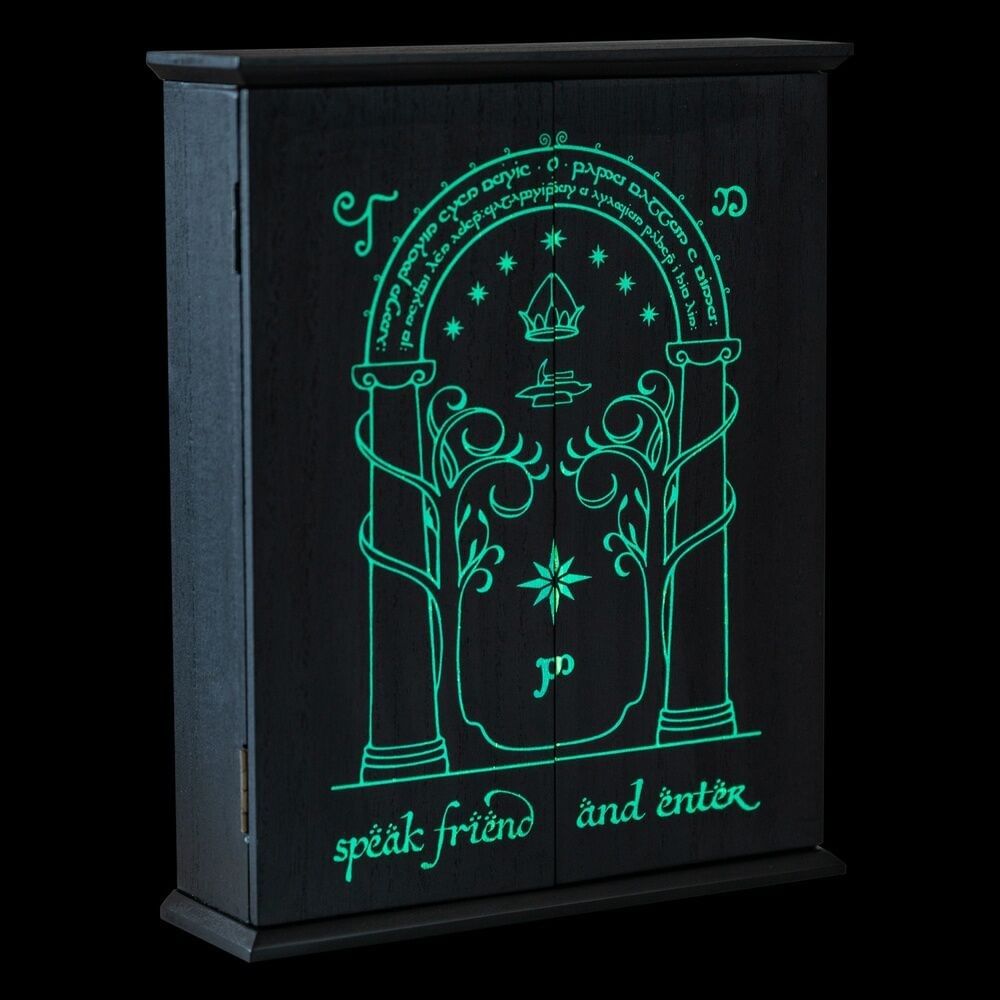 Pre všetkých milovníkov Stredozeme a kultovej trilógie Pán prsteňov je tu originálna nástenná skrinka na kľúče v tvare legendárnej Brány do Morie. A čo je najlepšie? V tme svieti! Tajomné elfské písmo a znaky ožijú magickým svetlom, ktoré navodí tú pravú atmosféru.