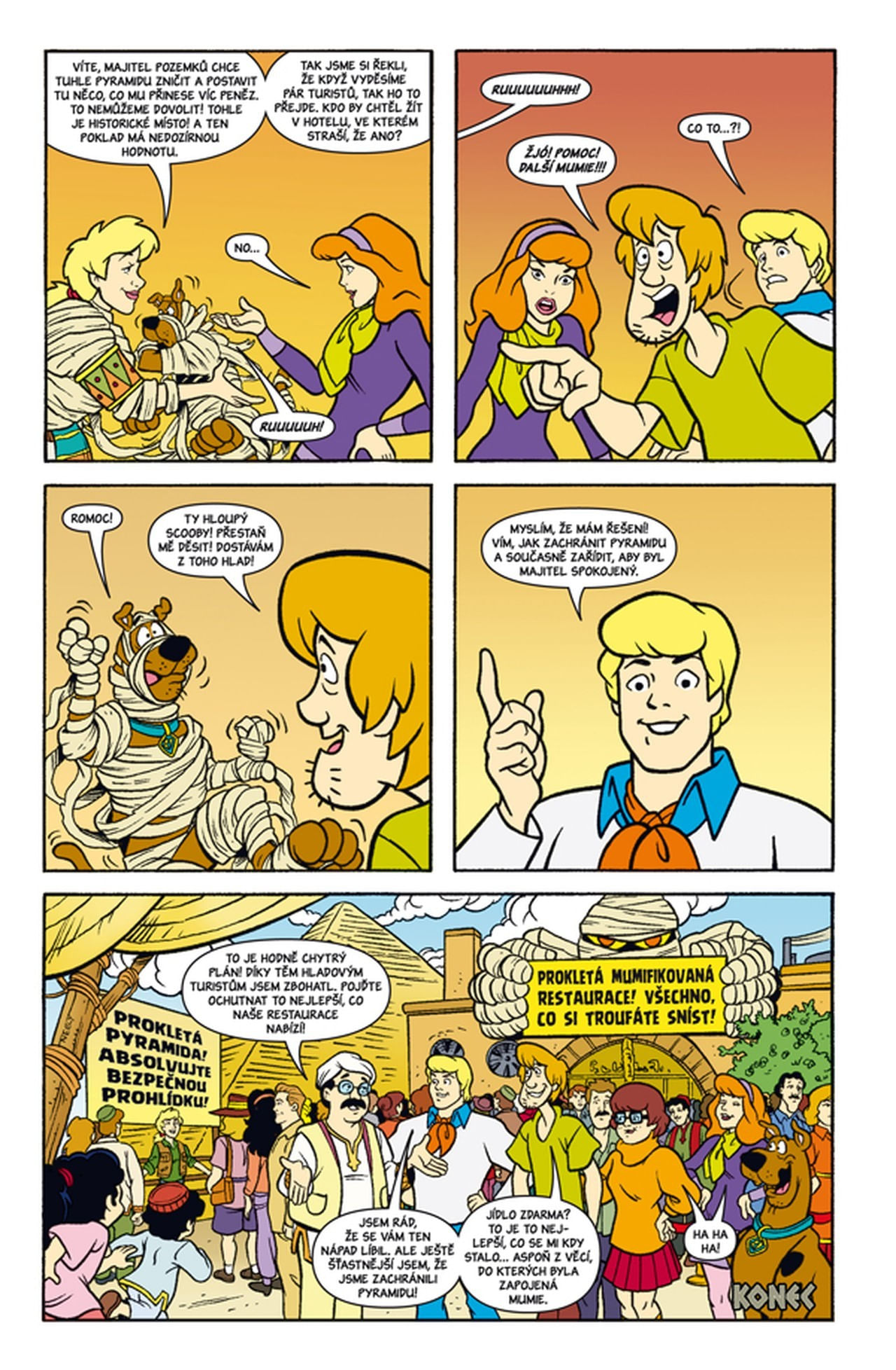 Môj prvý komiks: Scooby-Doo, kde si?: Hodný, zlý a strašný Záhady s.r.o. vyráža do akcie a žiadny prízrak si pred nimi nemôže byť istý! V tejto nadupanej knižke sa pustí hneď do ôsmich veľkých prípadov, ktoré preveria Velmine znalosti, Fredovu vynaliezavosť, Daphneinu ráznosť… a zbabelosť aj apetít Scoobyho a Shaggyho! Dôjde na postrach westernového mestečka, nebezpečnú múmiu, petardový prízrak, staré hrady, prekliate talizmany, kúzelnícke vystúpenia a hororový con (samozrejme s jedným duchom navyše)! Scooby Dooby Doo!