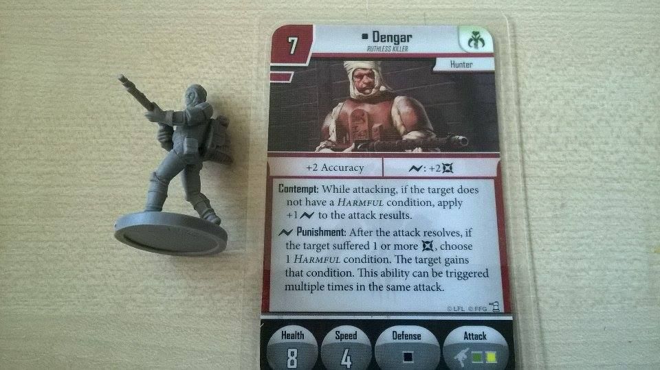 Hrdinovia si od teraz budú musieť dávať väčší pozor - prichádza totiž lovec Dengar. Jeho základný dostreľ 2 políčka, využitie blesku ako zásah +2 a schopnosť tvrdého zásahu, budú tlačiť hrdinov k tomu, aby využili každú možnú chvíľu k zalezeniu si do úkrytu.