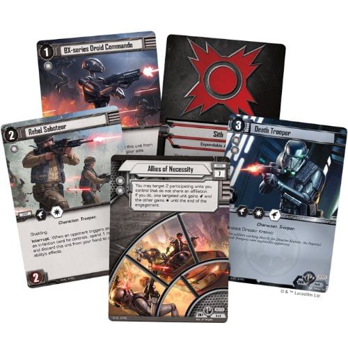 Within the new Alliances cycle, you gain plenty of incentives to bring multiple affiliations together. While multi-Affiliation decks have always been a possibility in Star Wars: The Card Game, Allies of Necessity offers more tools to help you than ever before-starting with new Affiliation cards, which offer new deckbuilding requirements and special abilities. What 's more, Youll find iconic characters from Rogue One, Star Wars Rebels, and the Darth Vader comics throughout the cycle: in fact, this first Force Pack includes Doctor Aphra, Director Krennic, Captain Cassiano Andor, and Jyn Ersoy.