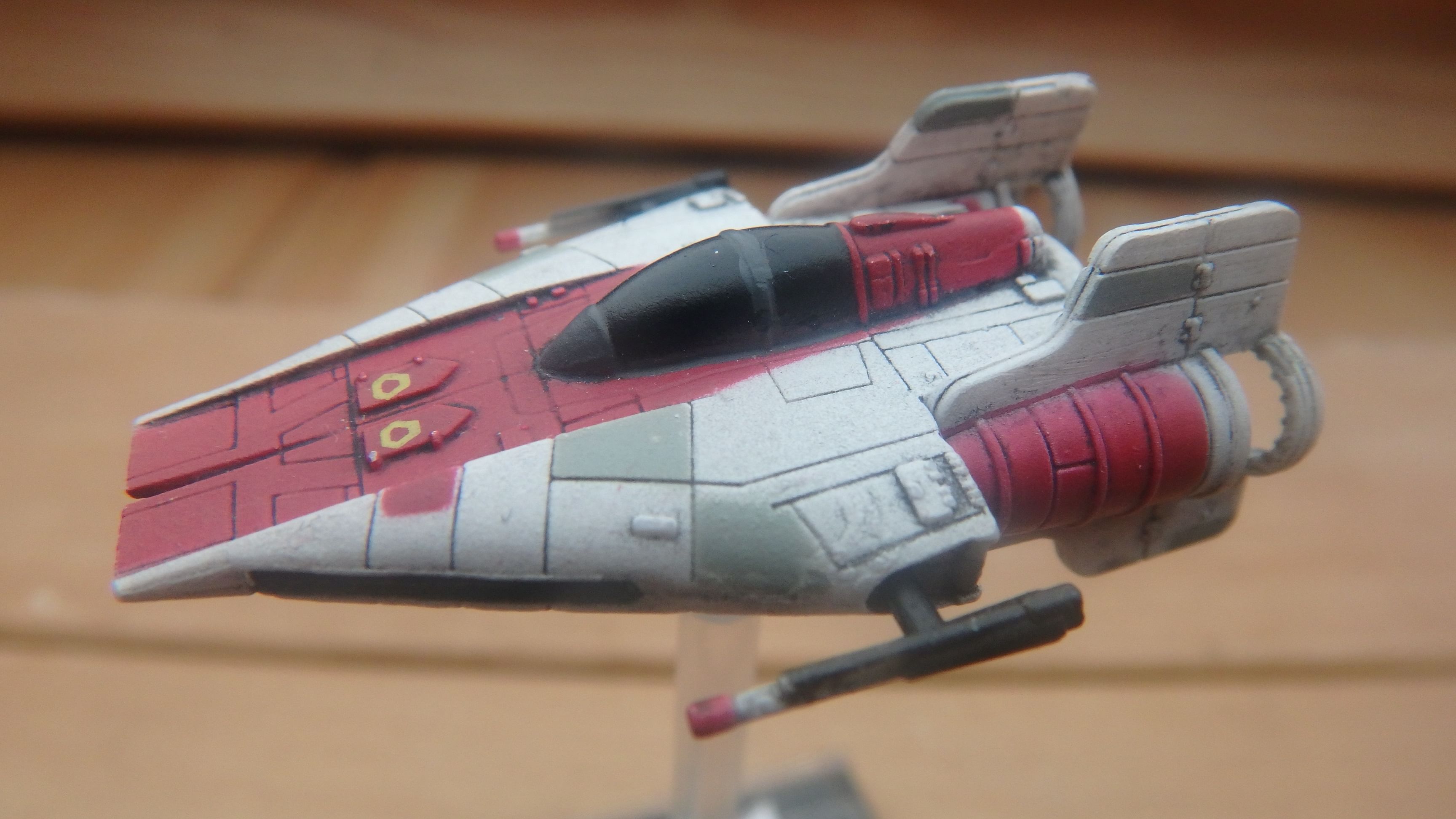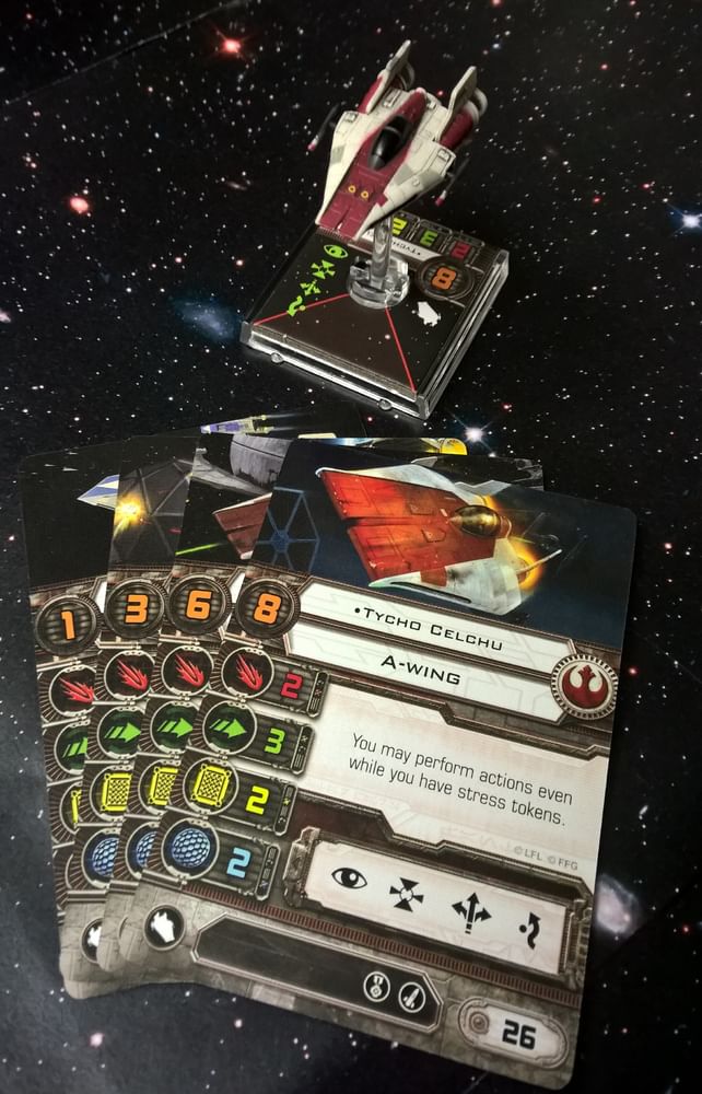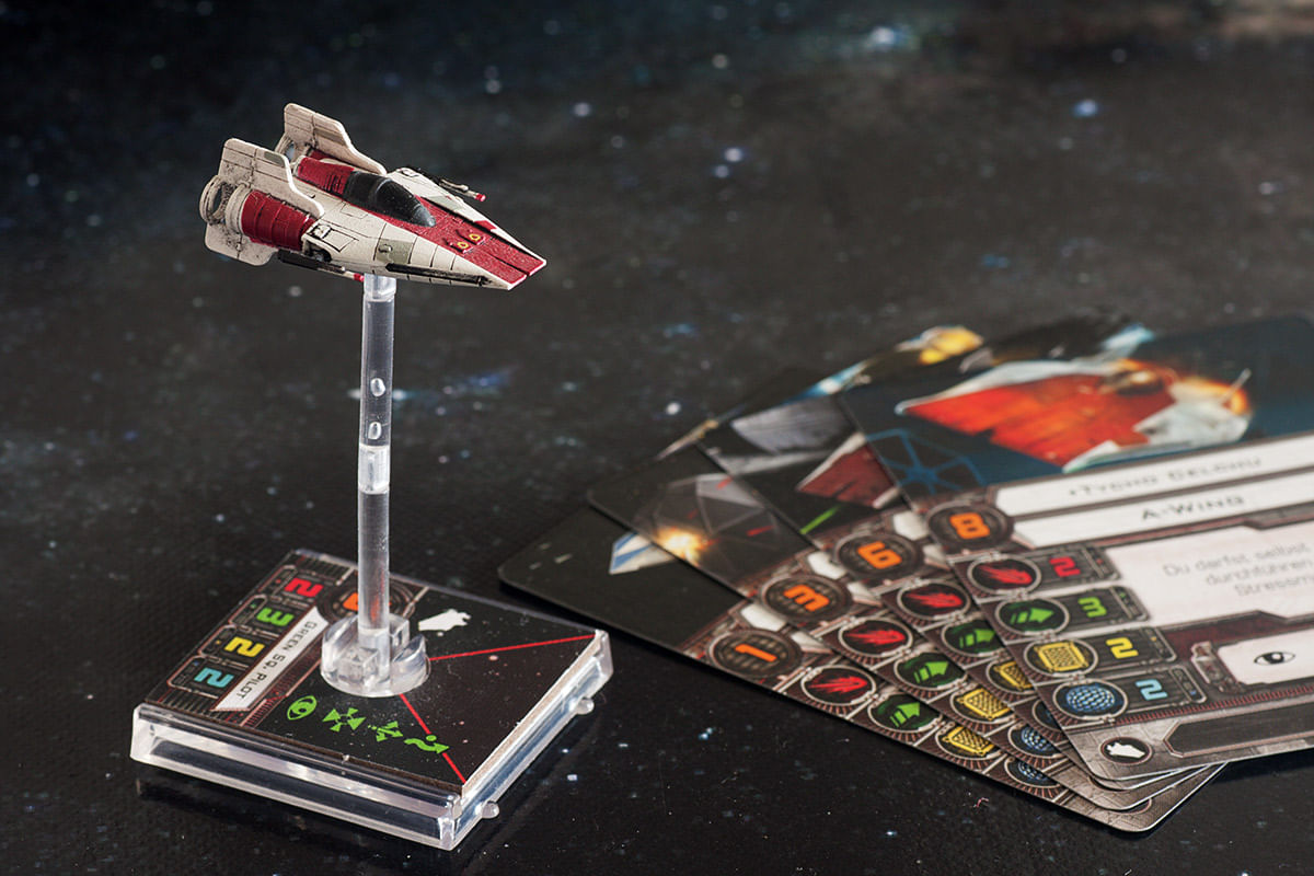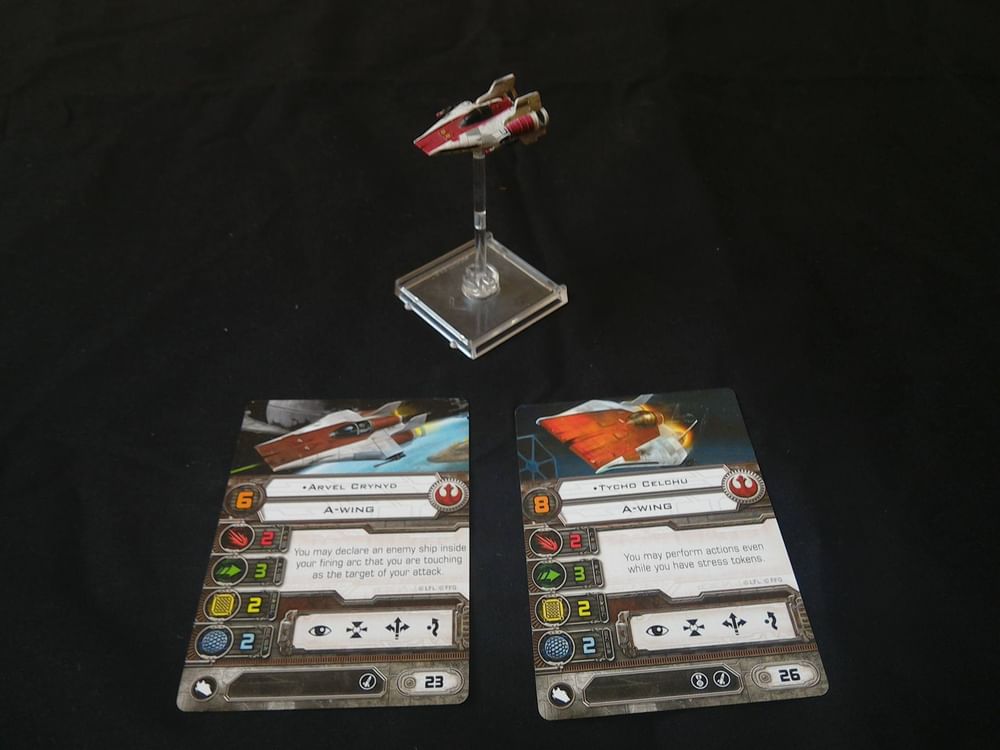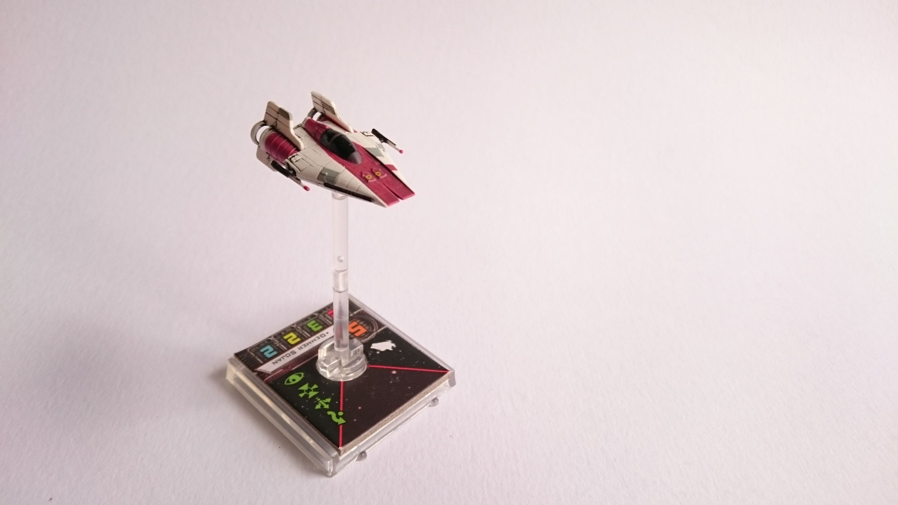 A-wing je malá a obratná stíhačka, která má dobrou obranu (tři zelené kostky). S celkem nízkou cenou můžete nasadit větší počet těchto lodí, nebo doplnit vaší sestavu.