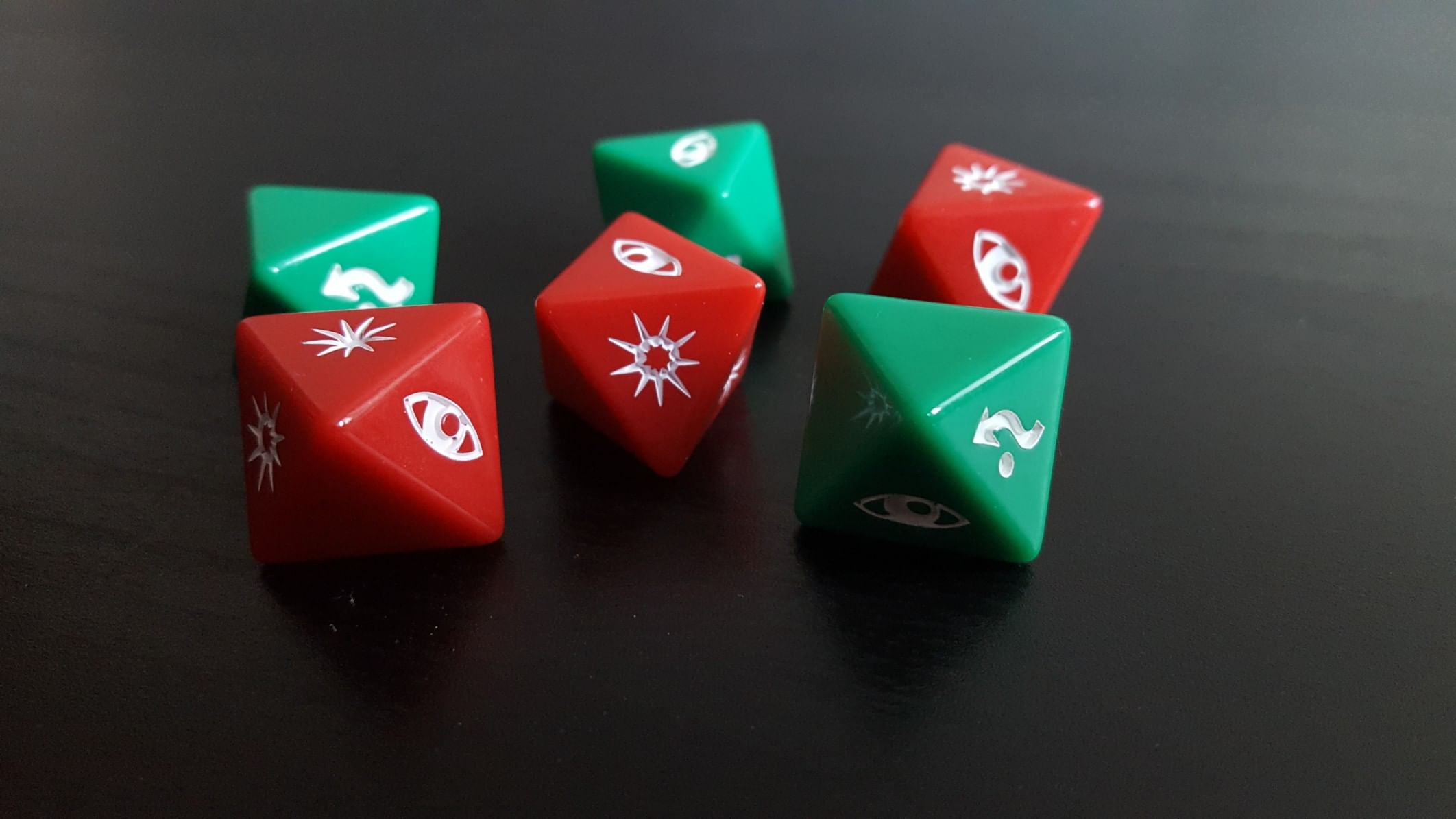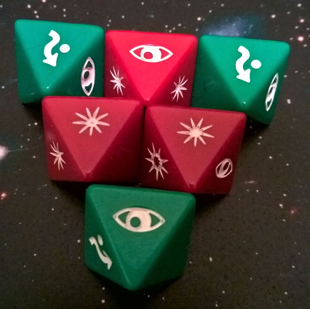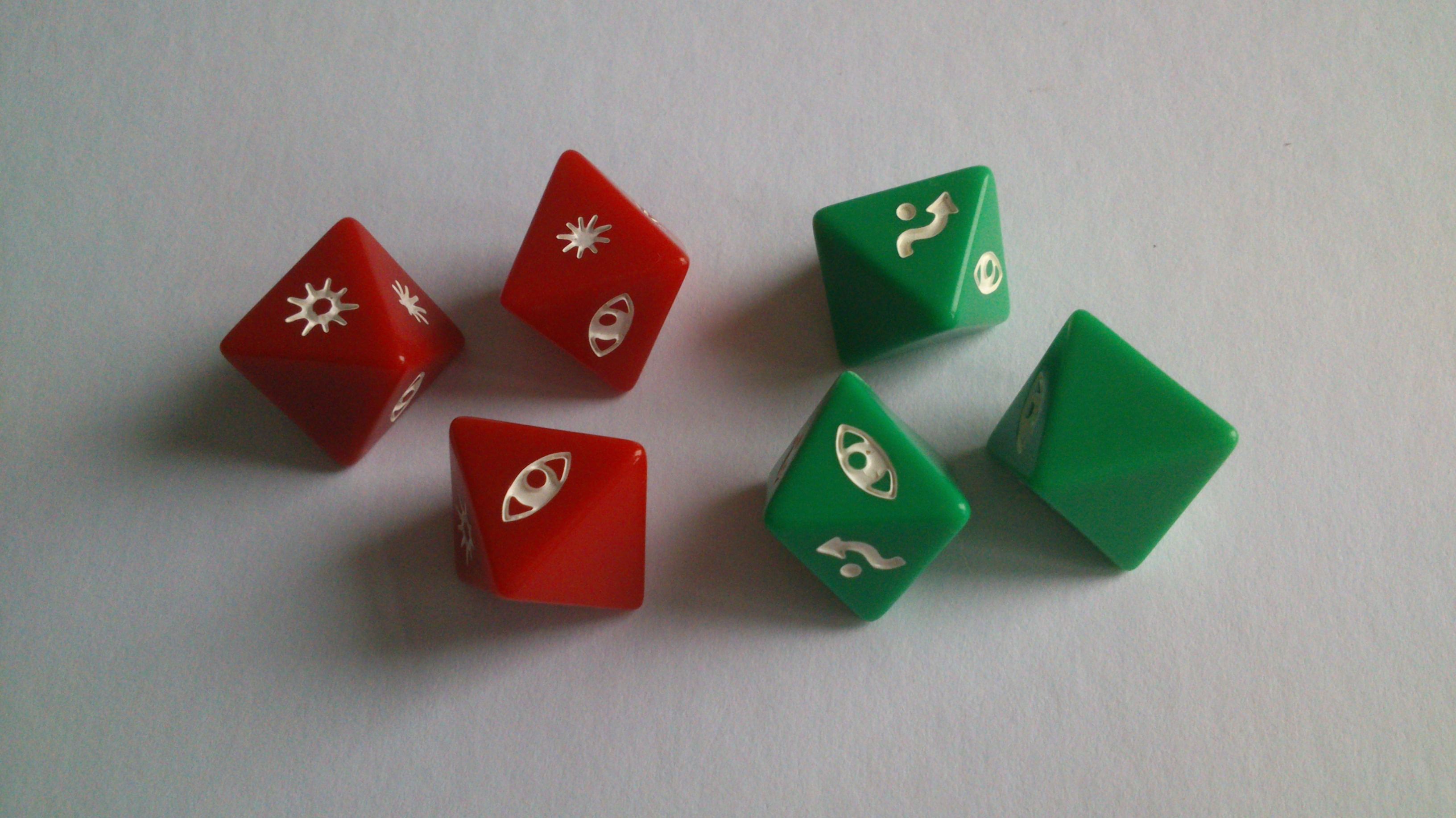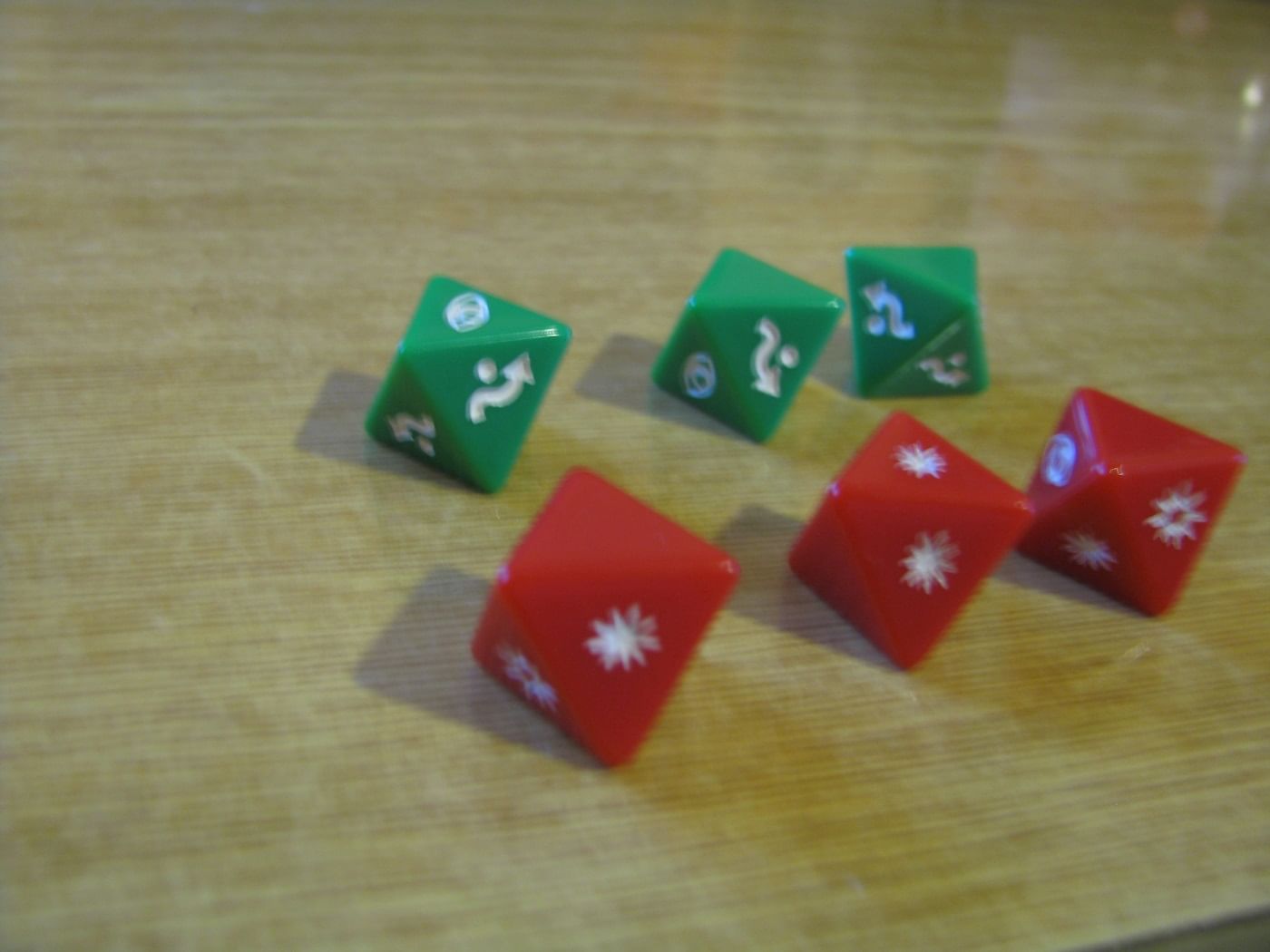Kostky. Základní (startovní) krabice obsahuje pouze tři kostky. Při se však často dostanete do situace kdy je třeba házet větším počtem kostek než tři, takže jedno balení kostek navíc je třeba a umožní vám provést hod najednou.