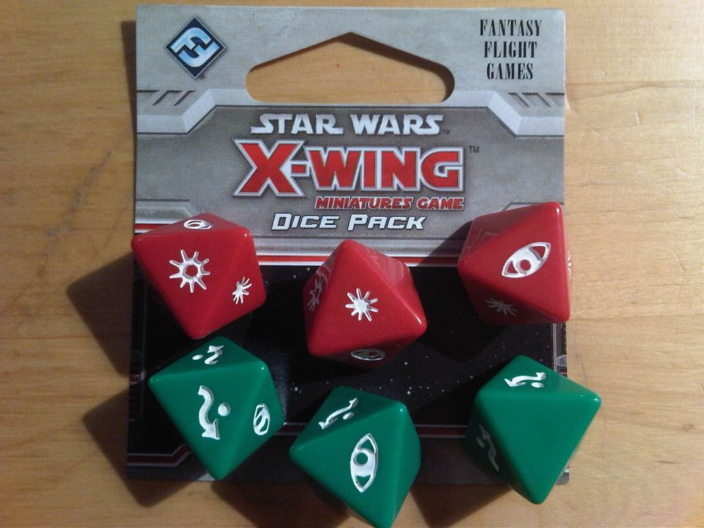 Sada kociek pre sci-fi vojnovú hru Star Wars: X-Wing Miniatures Game , balenie obsahuje tri červené kocky pre útok a tri zelené pre obranu, teda počet potrebný pre jedného hráča (základná sada obsahuje kocky len pre jedného hráča).