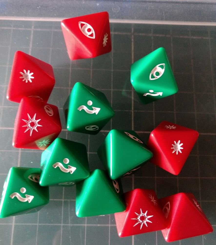 Je toto hodnotenie prínosné? ÁNOSamostatné balení hracích kostek je, dá se říct, skoro nutností pro ty, kdo si nezakoupili dva Core sety. Ve spoustě případech totiž budete potřebovat více než 3 červené/zelené kostky a znovu házet s těmi, co vám padly, aby jste se dostali na potřebné množství hozených kostek, může být dost nepřehledné a zdlouhavé. Tento problém vyřeší právě tento, k tomu určený set. Z toho důvodu vřele doporučuji.