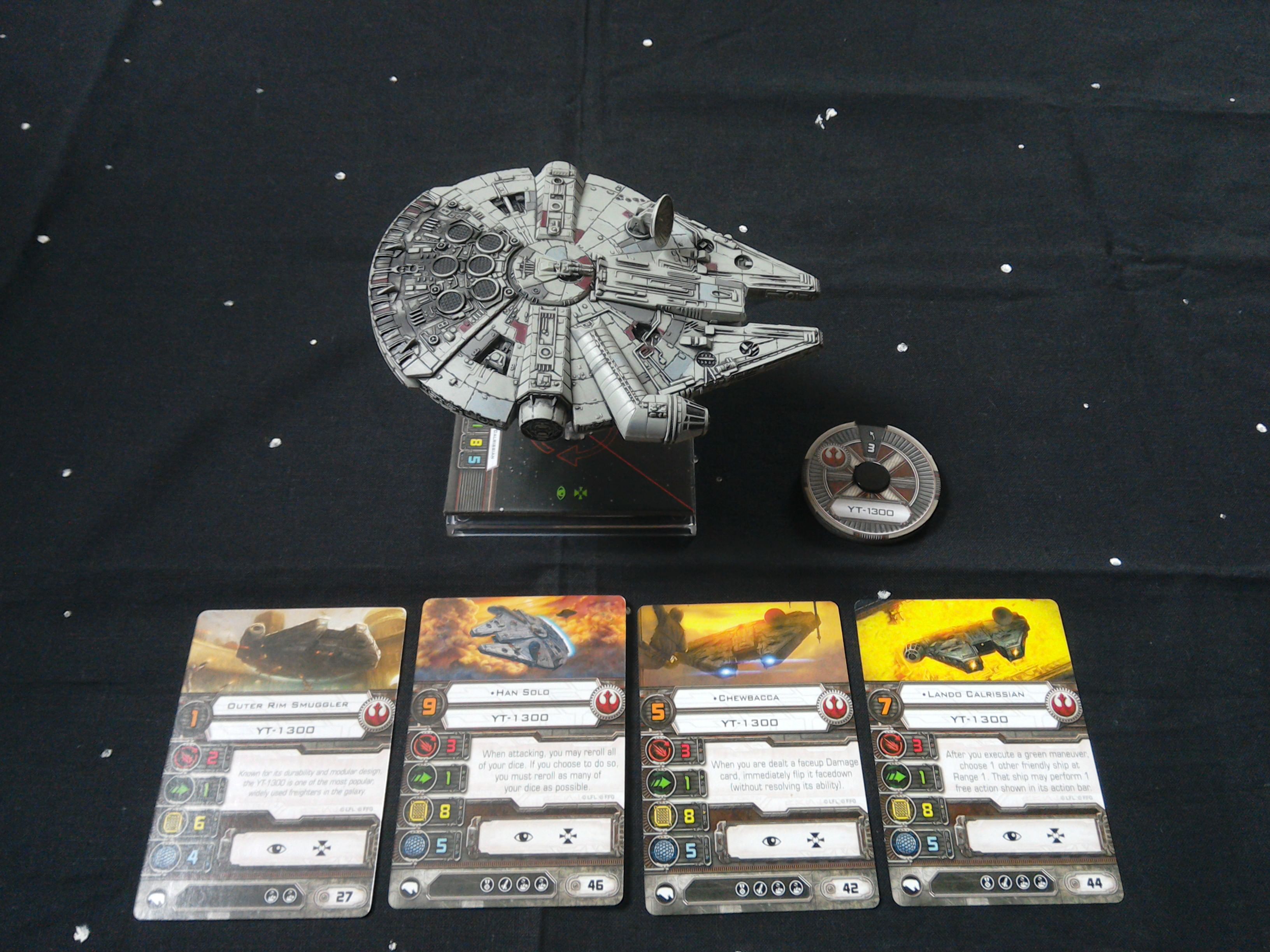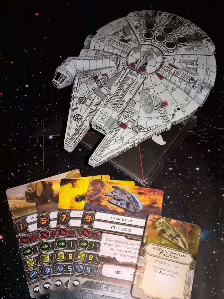 Asi nejznámější vesmírná loď ze světa Star Wars. Kdo by nechtěl mít ve své sbírce Han Sola a Žvejkala. Model je ve srovnání se základním X-Wingem opravdu obrovský. Jeho výhodou je velmi slušná manévrovatelnost a možnost střílet primární zbraní i mimo standardní výseč. Pro hráče za Rebely jedno ze základních rozšíření. Super cena.