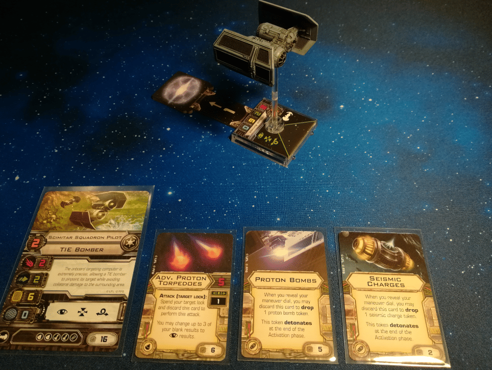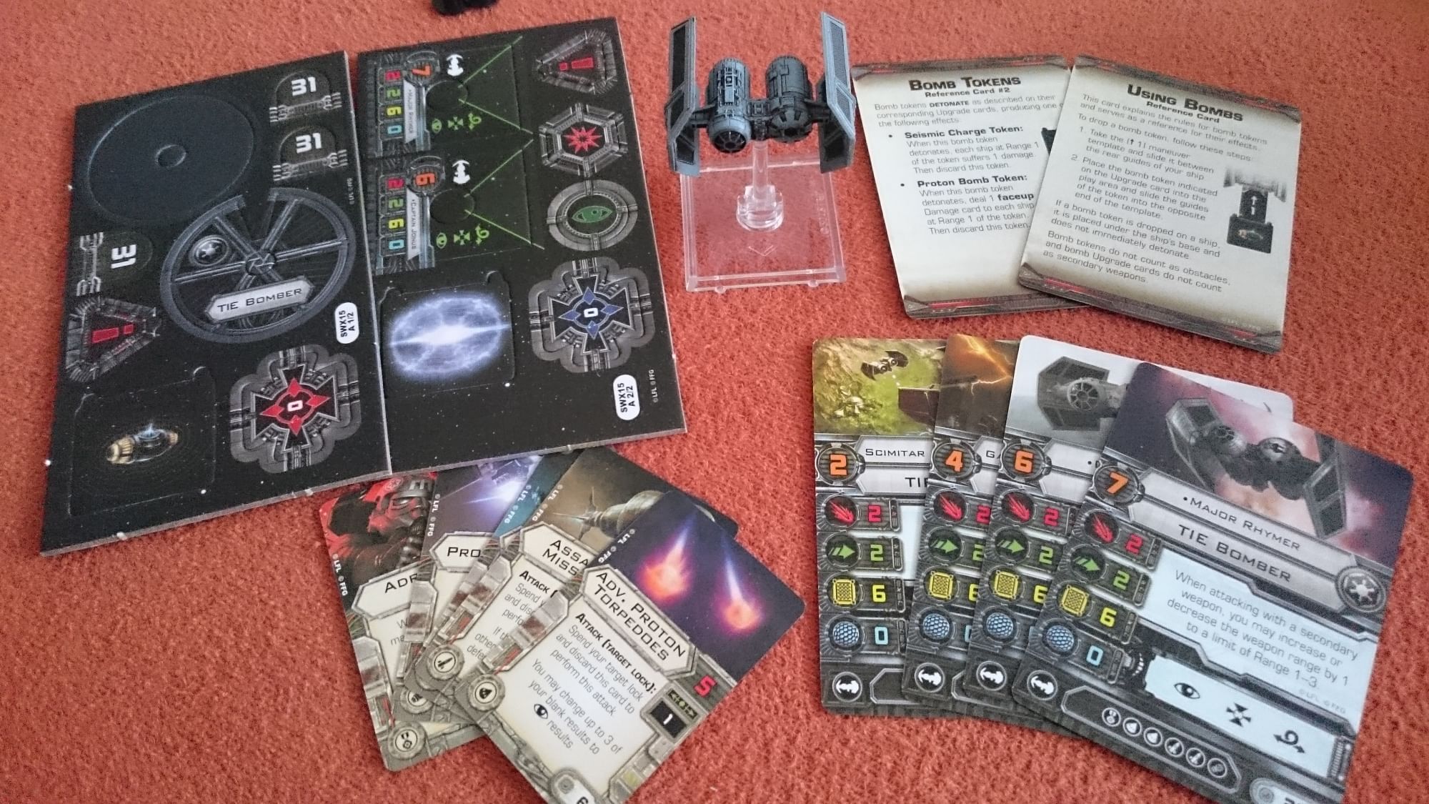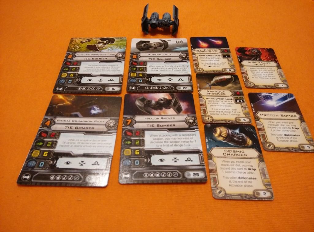 Je toto hodnotenie prínosné? ÁNONádherný model. Jsem opravdu překvapen, jak se povedly jednotlivé detaily. Pokud chcete bombardovat, budete se chtít určitě pohybovat jako první. Není nic horšího než si v tlačenici hodit bombu pod vlastní nohy (bomby se totiž vyhazují před tím, než provádíte přesun lodi a pokud vám někdo vletí do cesty a dojde ke kolizi, schytáte to taky). V době detonace seismic charges nebo ;proton bombs, je tedy dobré být na míle daleko. K tomu určitě poslouží dostatečné nízký skill pilota. Dovedu si představit upgrade extra munition, který najdete v rozšíření TIE Punisher. Nesnažte se však bombardér zbytečně přeplňovat, jinak se na něj protihráč zaměří a sestřelí ho ještě před tím, než na něj vyložíte svůj náklad.