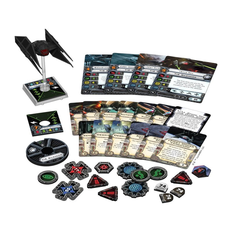Sada obsahuje 1 predfarbená miniatúru stíhačky TIE Silencer užívané Prvým poriadkom, 4 pilotov (medzi nimi je Kylo Ren), 4 karty plavidlá, 12 vylepšení, 1 kartu kondície, manévrovací voľby a všetky potrebné žetóny.