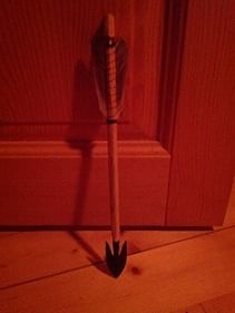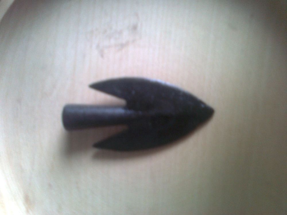 Replika menšieho historického vojnového hrotu na šíp. Dĺžka hrotu je cca 5,5 cm, šírka 2,8 cm, hmotnosť 290 gramov.