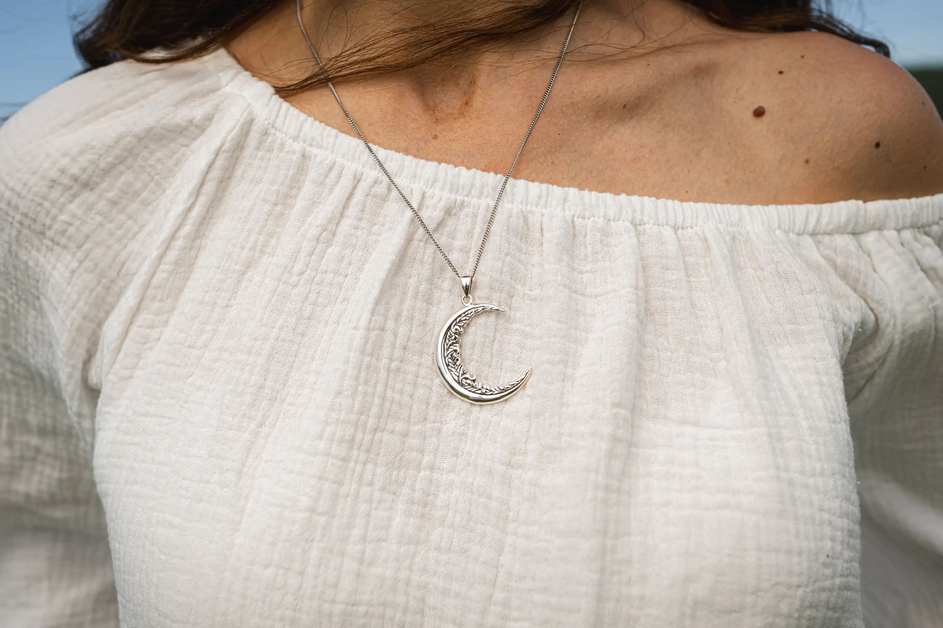 Vyrobený je z pravého striebra 925. Je ideálny pre každého, kto hľadá spojenie s prírodou, starou múdrosťou a energiou mesačných cyklov.