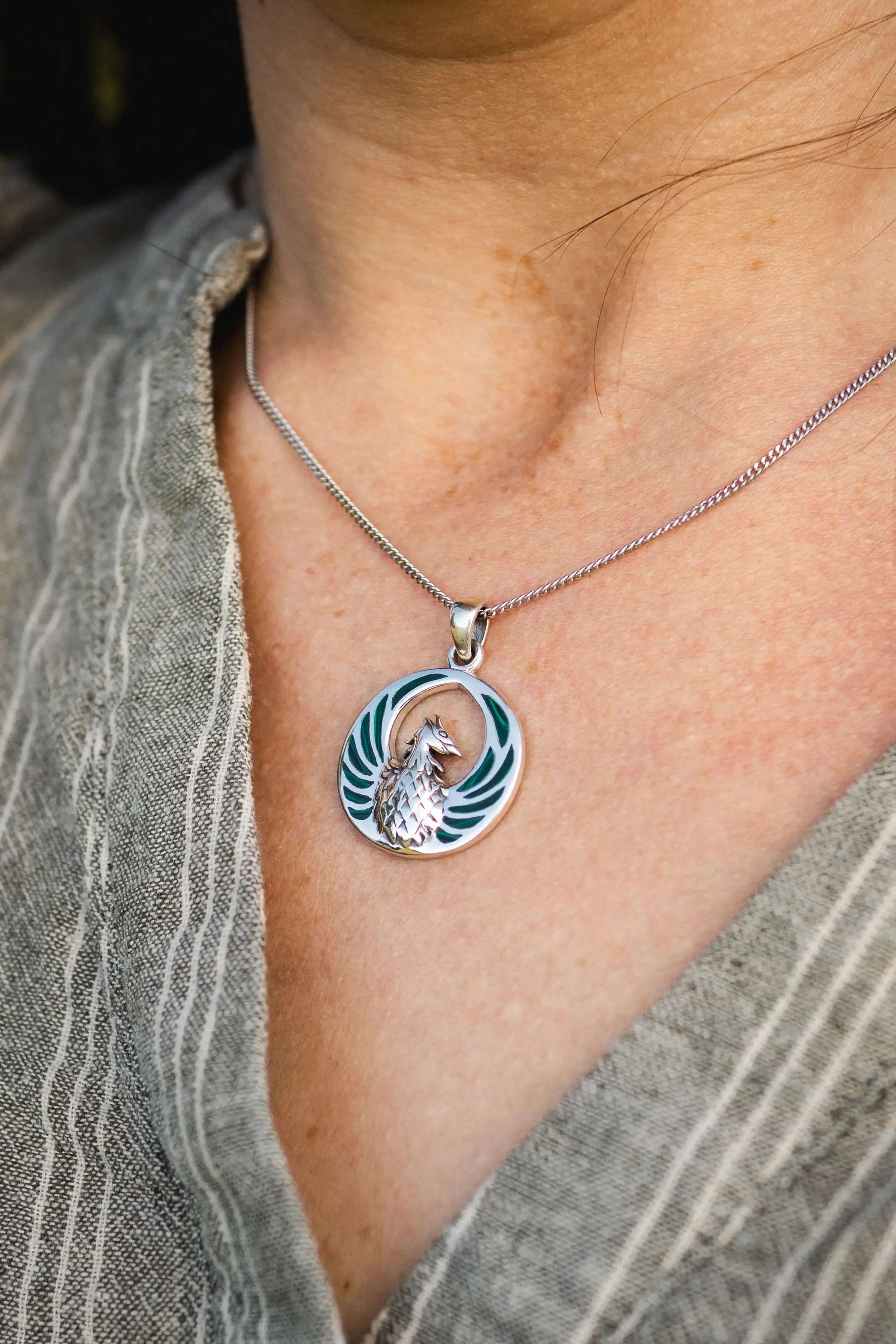Tento strieborný prívesok z pravého striebra 925, zdobený malachitmi, spája silu mýtu s prirodzenou krásou prírodného kameňa. Balený je v elegantnej krabičke.