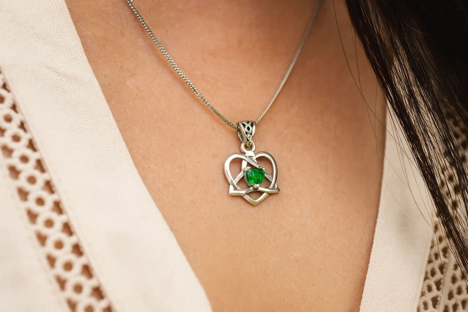Strieborný prívesok Keltské srdce so smaragdovým sklom (Ag 925)