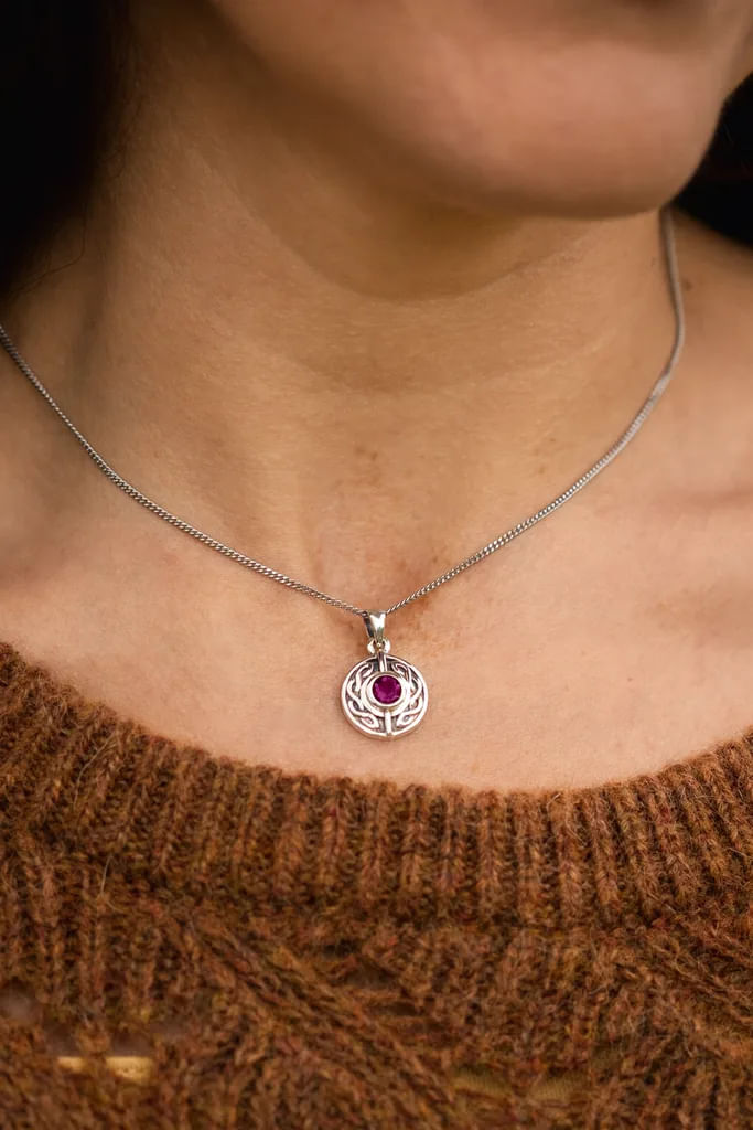V srdci prívesku septembra brúsený granát – kameň vášne, odvahy a ochrany. Jeho ohnivé jadro symbolizuje životnú silu, ktorá rozjasňuje a zahrieva vnútorné svetlo nositeľa.