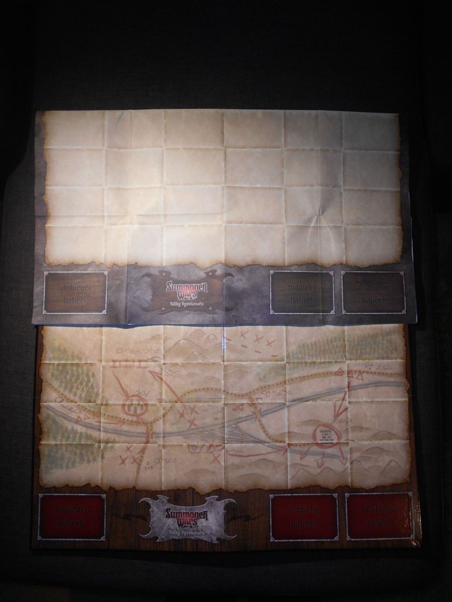 Pevnou desku premium ke hře summoner wars můžu určitě doporučit. Základní hra obsahuje jednoduchý papírový herní plán, který ovšem dělá tak nízkou cenu této hry. Na zkoušku, jestli vás hra chytne, úplně stačí. Pokud ji však začnete hrát tak často jako my, papír se překládáním rychle opotřebuje a potrhá, proto je tato deska snad až nezbytná. Na fotce navíc můžete vidět grafický rozdíl papírové a pevné desky.