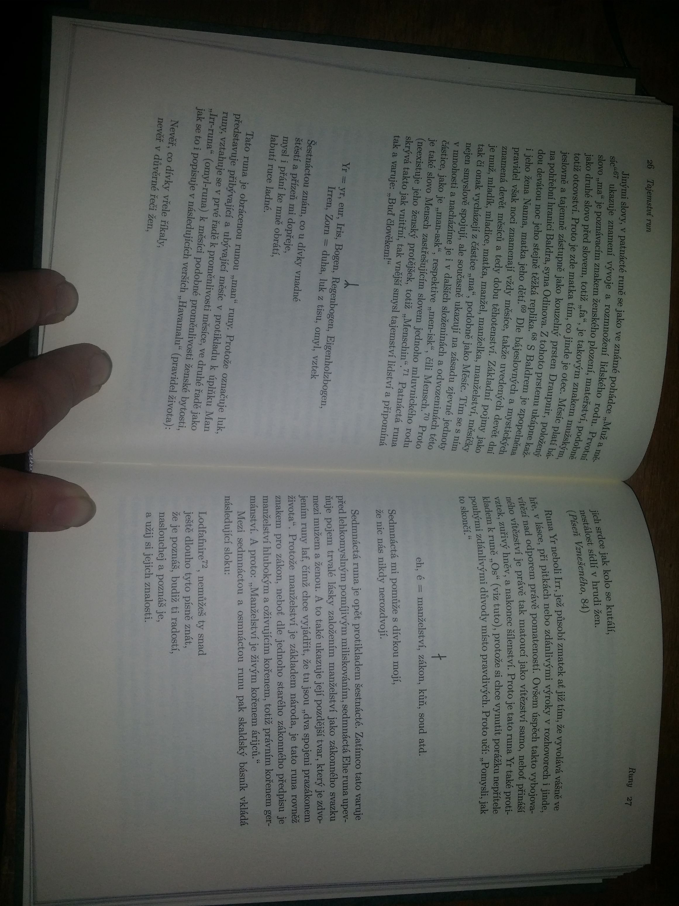 Čitatelia sa prvýkrát ponúka možnosť spoznať v českom jazyku práci popredného rakúskeho ariosofa konca 19. stor., G. von Lista (1848-1919). Unikátne dielo, pozostávajúce z časti venovanej Runa a časti venovanej heraldike a etymológiu, bolo zamýšľané ako predslov pre rozsiahlu autorovu tvorbu k tejto téme a dovoľuje komplexné prienik domentality autora a jeho filozofického poňatie metafyzického symbolizmu germánskeho písma - run.